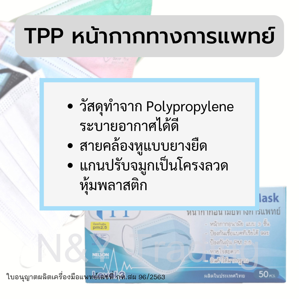 หน้ากากอนามัยทางการแพทย์ TPP ของแท้ กรอง 3 ชั้น หนา 30 แกรม แมสทางการแพทย์, แมสก์มาตรฐาน VFE99% BFE99% PFE98%