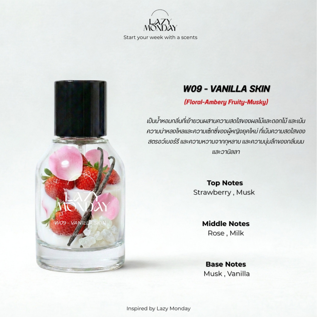 น้ำหอม LAZY MONDAY น้ำหอมผู้หญิง กลิ่น #W09 Vanilla Skin น้ำหอมติดทน เกรด EDP ขนาด 30 ml. / 10 ml.