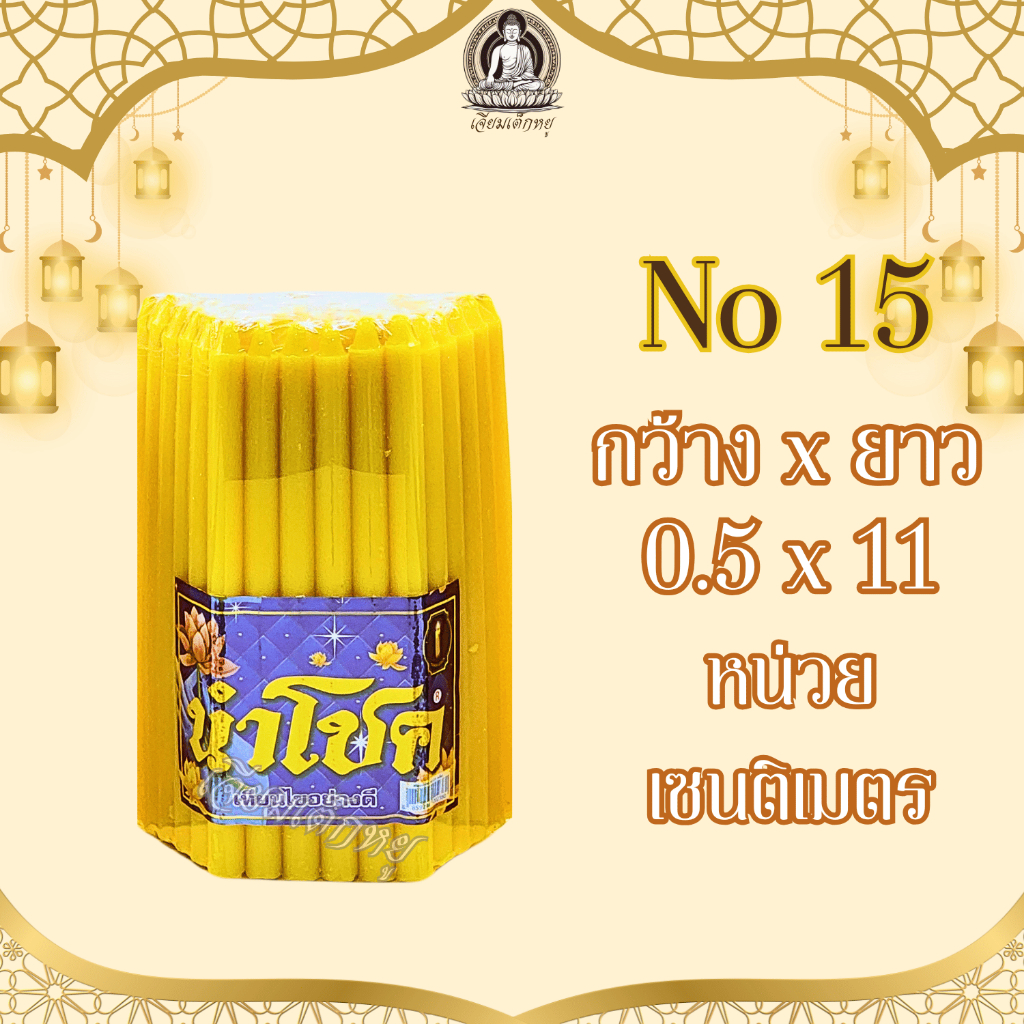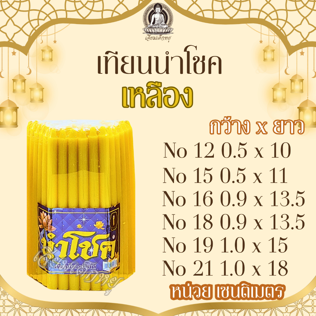 เทียนนำโชค เทียนเหลืองธรรมดา และเทียนหอม น้ำตาเทียนน้อย หลายขนาด (51 เล่ม)