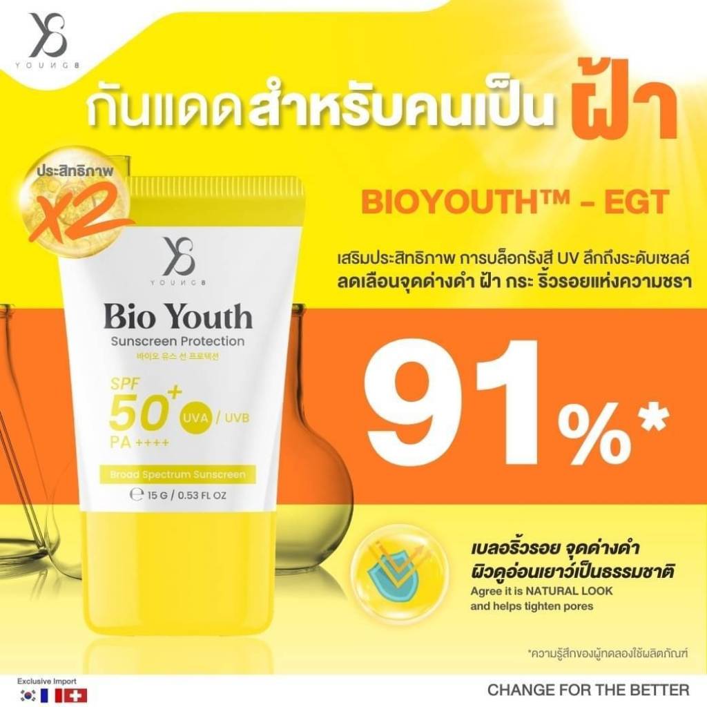 [แบรนด์Y8] Bio Youth กันแดดผิวแพ้ง่าย SPF50+ PA++++ ลดฝ้า กระ หน้าไม่หมอง 15g