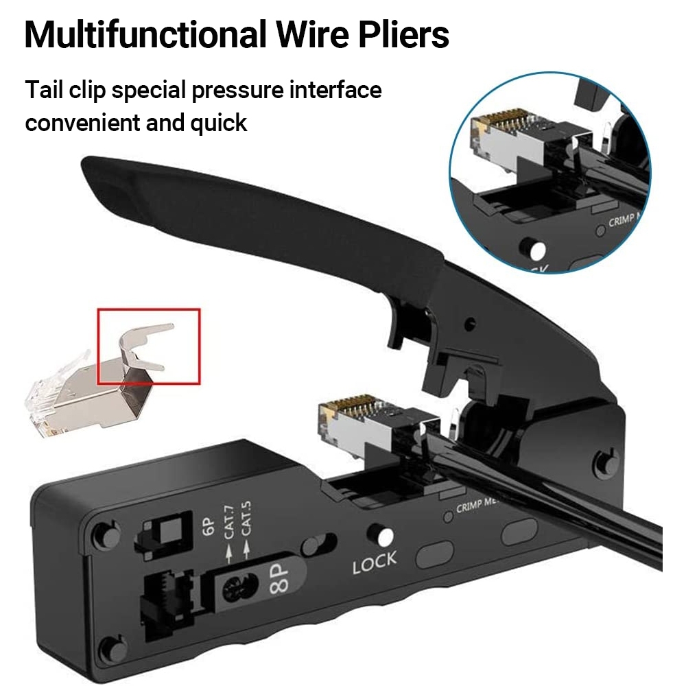 Hoolnx ผ่าน RJ45 Crimper CAT7 CAT6A CAT5E Ethernet Crimp เครื่องมือสําหรับ Pass Thru RJ11 RJ45 Connector Modular ปลั๊ก Lan End