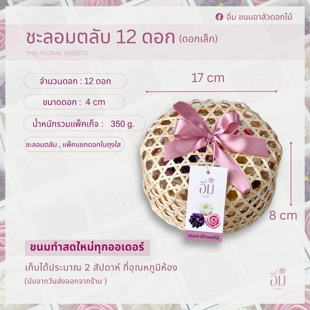อาลัวดอกไม้ ในชะลอมตลับ12ดอก | ขนมไทยพรีเมียม ของขวัญ ของฝาก ของรับไหว้ หวานน้อย โฮมเมด