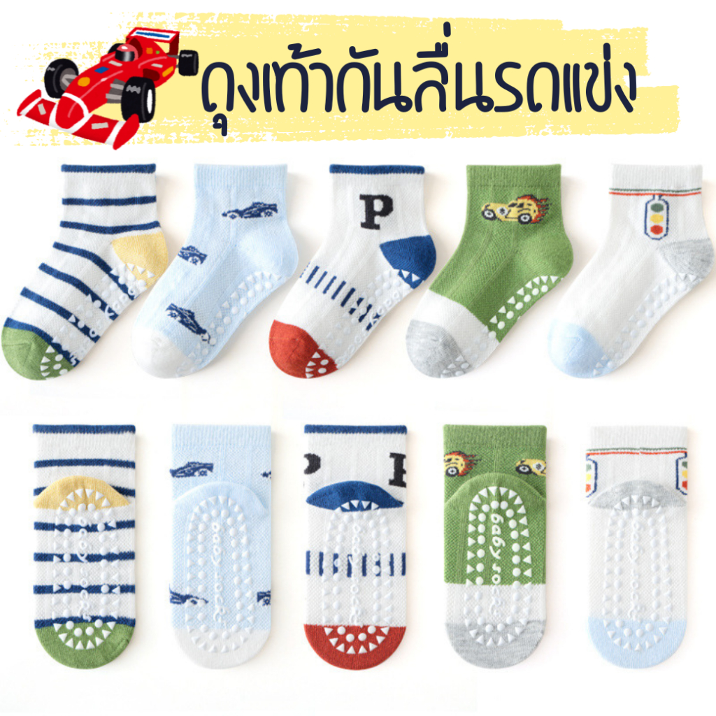 Bambilis : ⚡พร้อมส่ง⚡ ถุงเท้าเด็ก ถุงเท้าเด็กกันลื่นข้อสั้น 1 แพคมี 5 คู่ ลายรถแข่ง