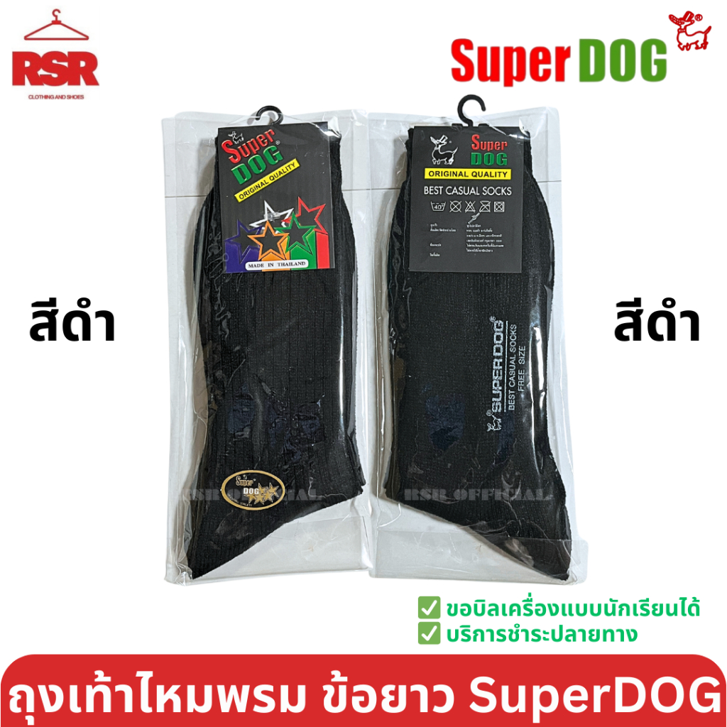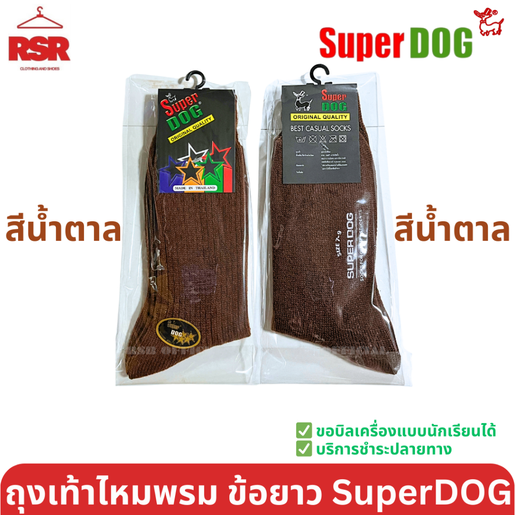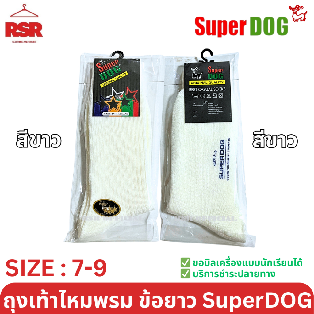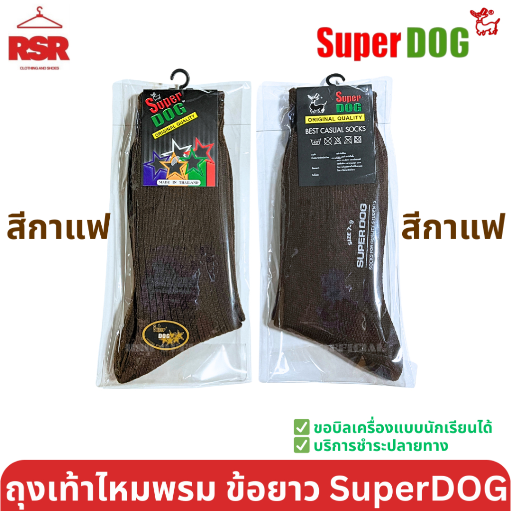 SuperDog ซุปเปอร์ด๊อก ถุงเท้านักเรียน ไหมพรม ถุงเท้าลูกฟูก ข้อยาว สีดำ สีกาแฟ สีน้ำตาล สีขาว ไซส์ 7-9 , FREESIZE