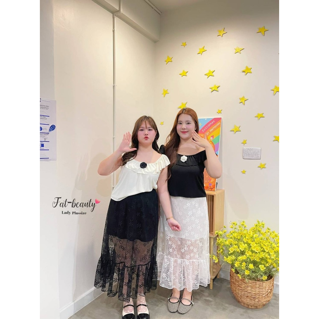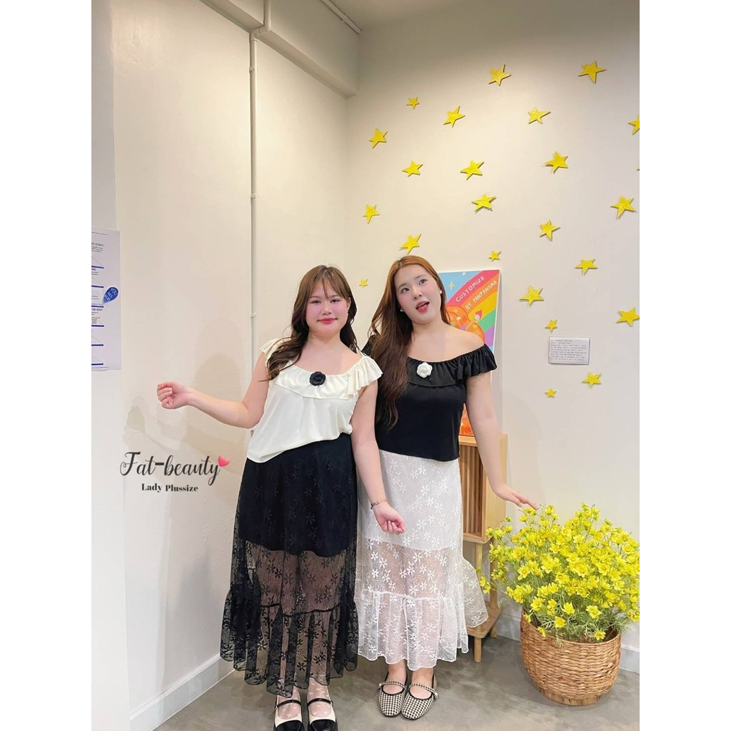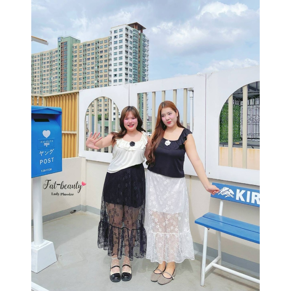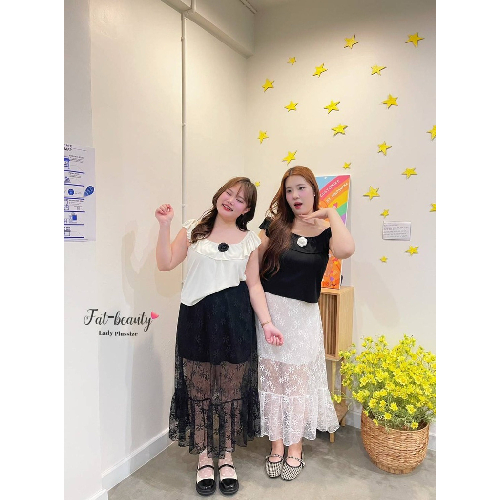 (FB) กระโปรงยาวต่อระบายเบาๆ ผ้าลูกไม้ไม่ยืด มีซับใน เอวสม็อบครอบ เสื้อผ้าสาวอวบอ้วน พลัสไซส์ ไซส์ใหญ่