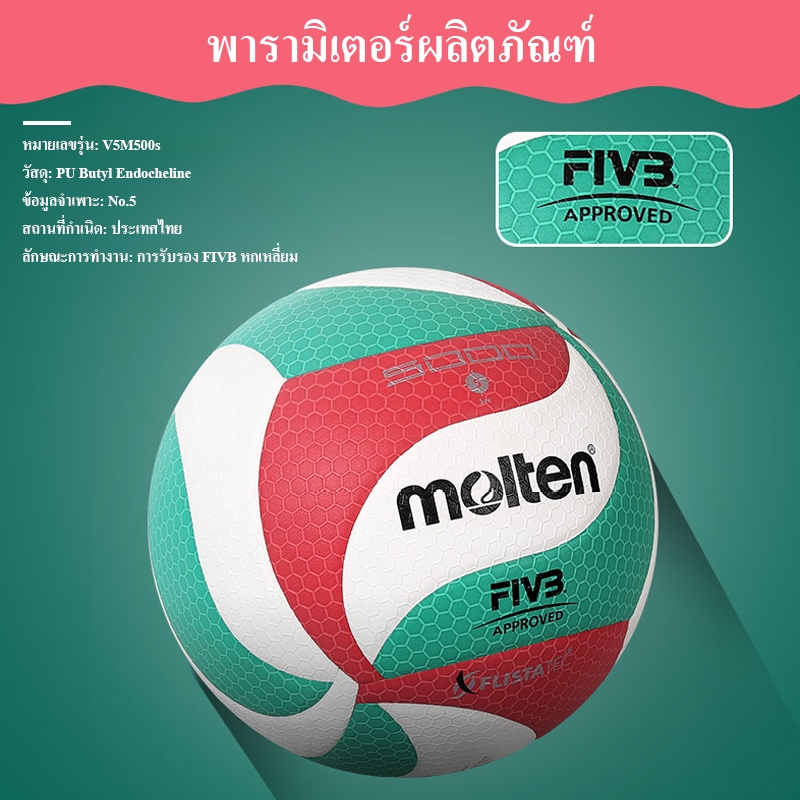 [ของแท้ 100%]Molten วอลเลย์บอล V5M5000 ลูกวอลเลย์บอล ไซซ์ 5 หนัง PU คุณภาพหนังนิ่มเป็นพิเศษ ลูกวอลเลย์บอลของแท้