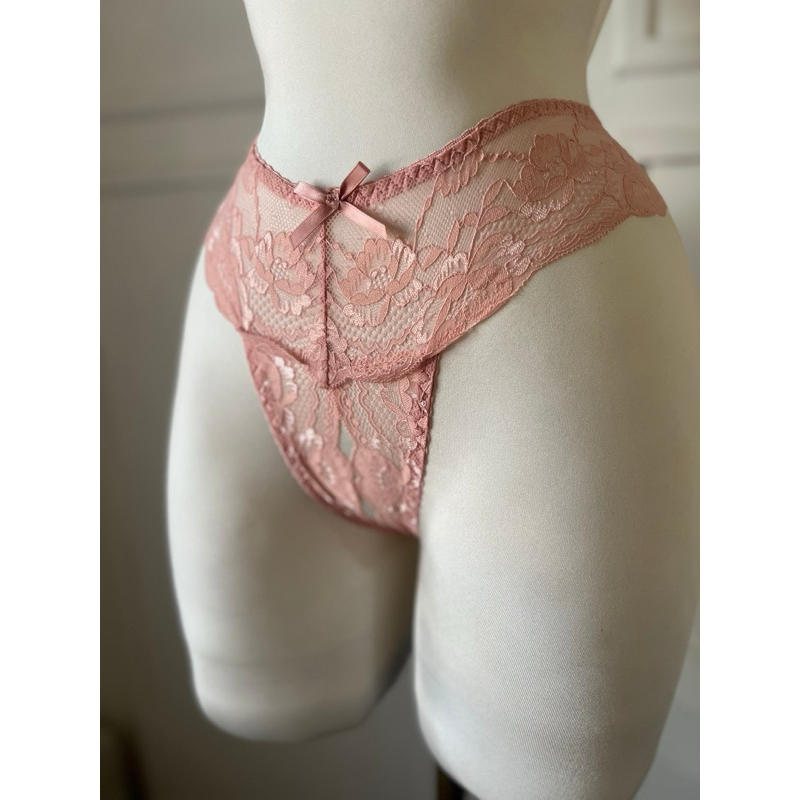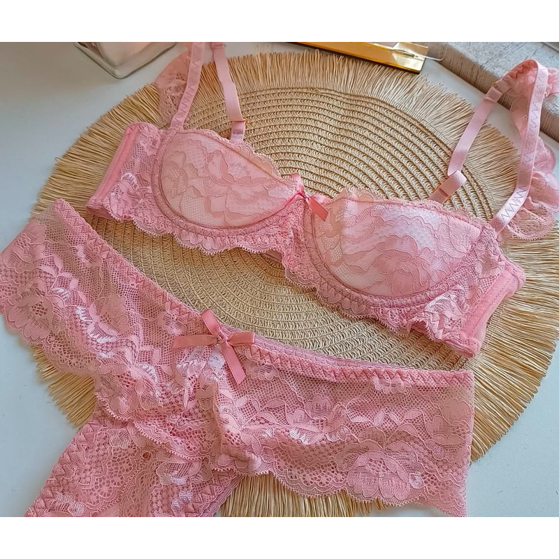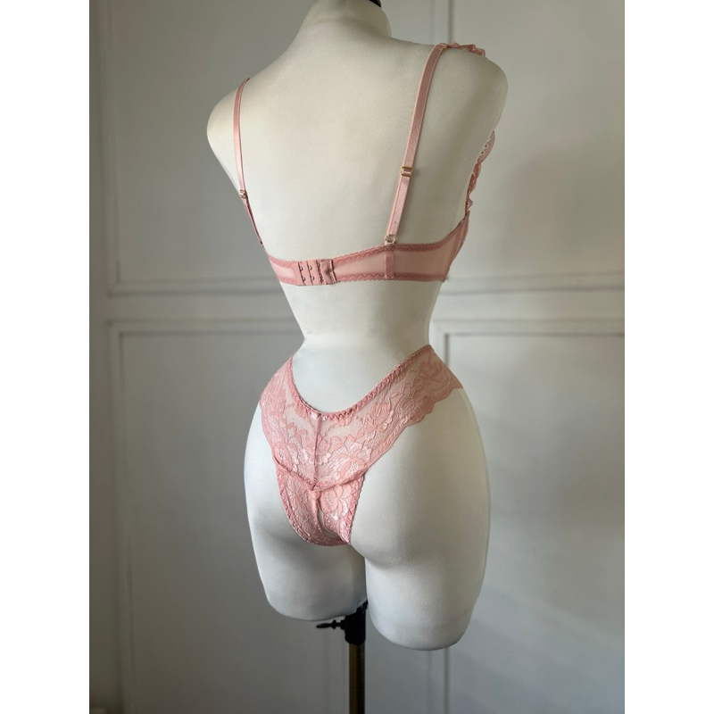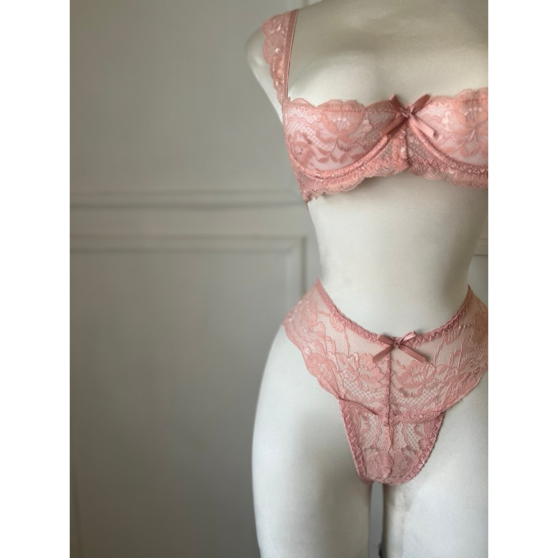 ชุดชั้นในลูกไม้ดันทรง ทรงเต้าต่ำ dusty pink push up lace bra set