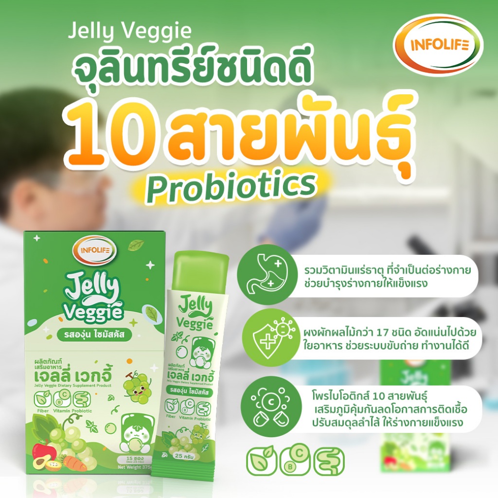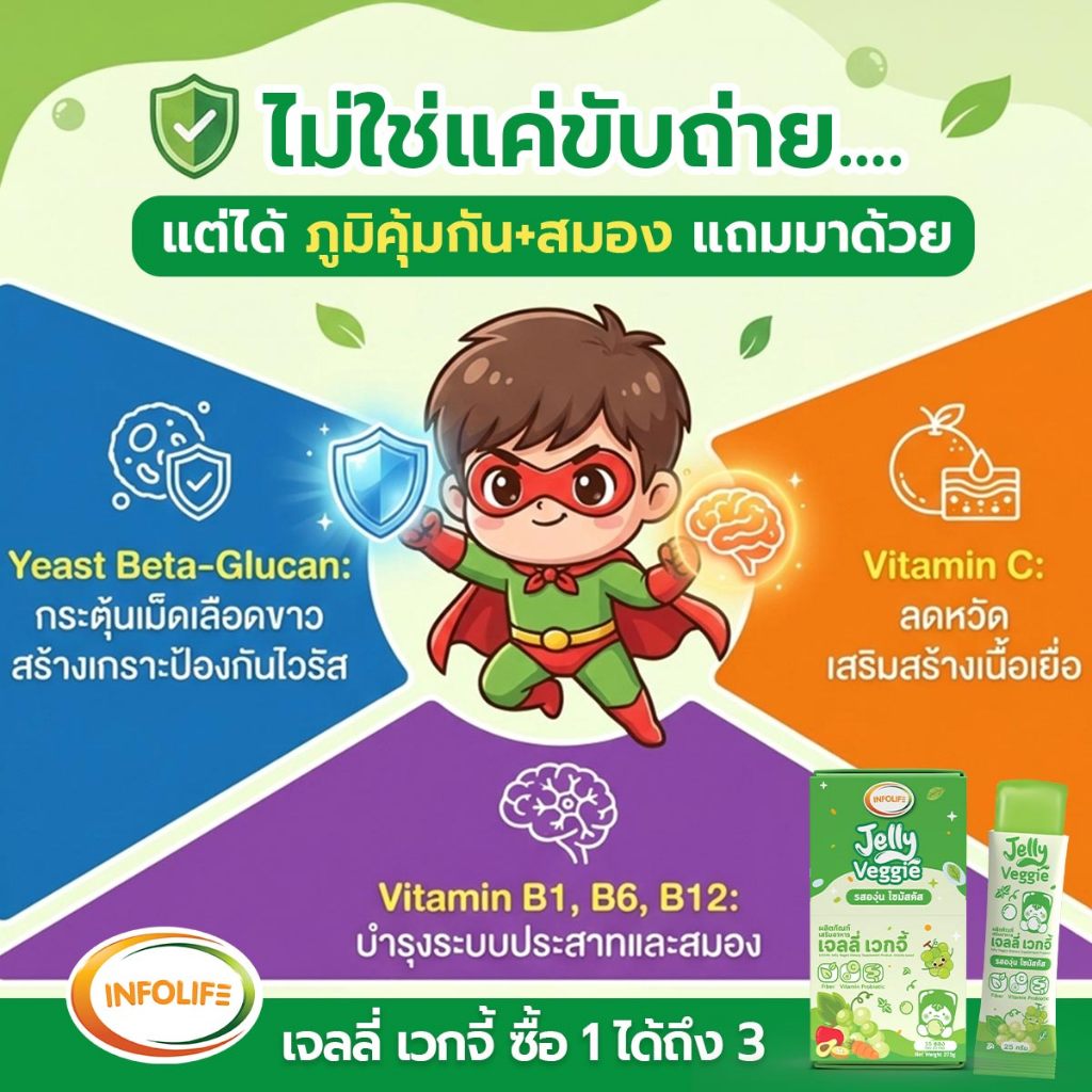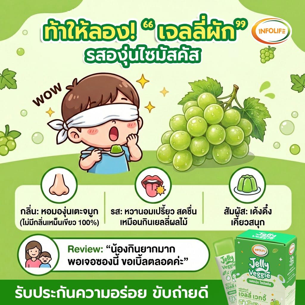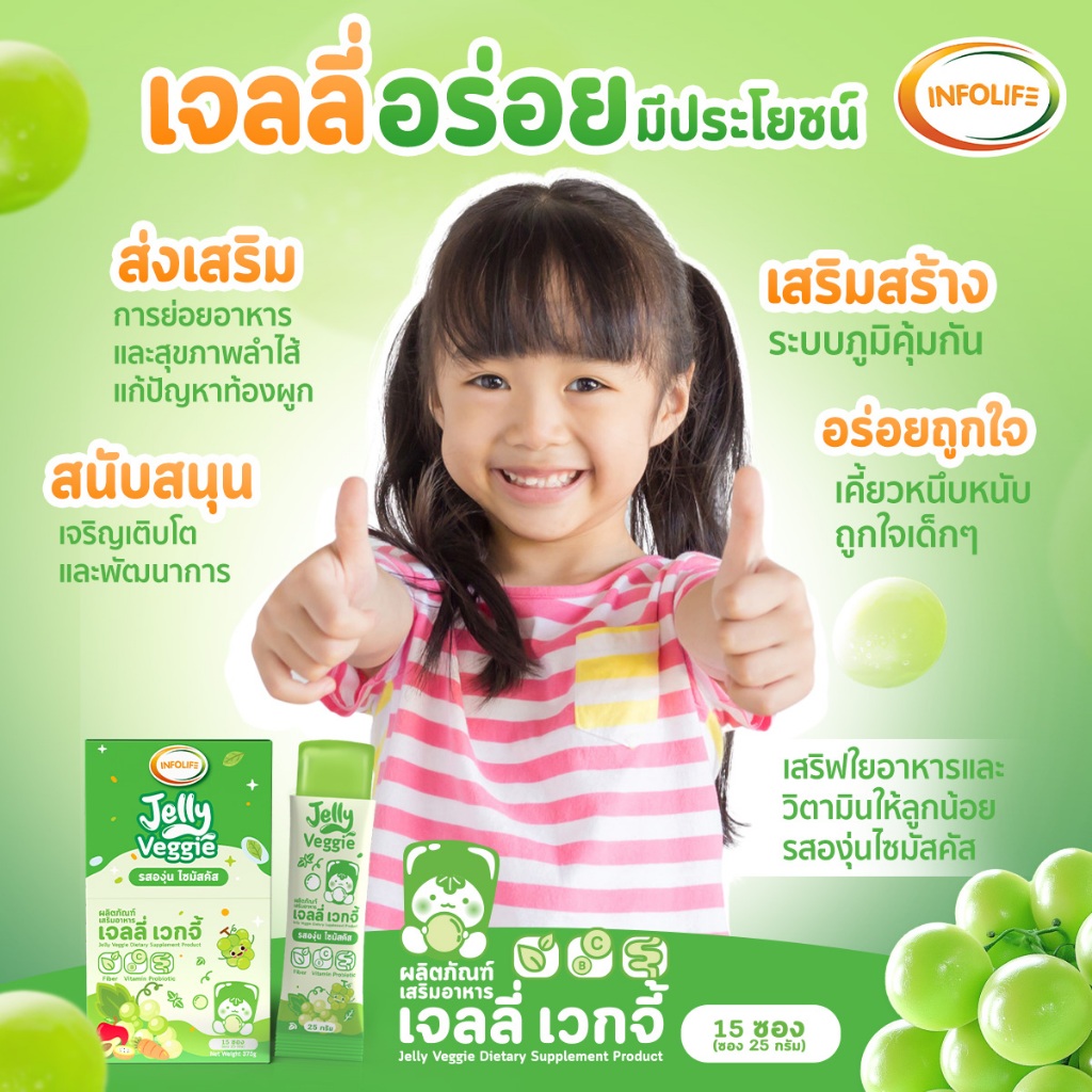 (เซ็ตคู่) อินโฟว์ไลฟ เจลลี่เวกจี้ เจลลี่ผักผลไม้รวม 5 สี กินผักยาก ท้องผูก เสริมภูมิคุ้มกัน รสองุ่นไซมัสคัส ส่งฟรี