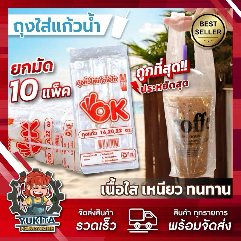(ราคาส่ง10ห่อ) ถุงใส่แก้วเต็มใบ ไฮโซ ถุงใส่แก้ว ถุงเต็มใบ OK เรียบใส 16 20 22 ออนซ์ กาแฟ ชาไข่มุก