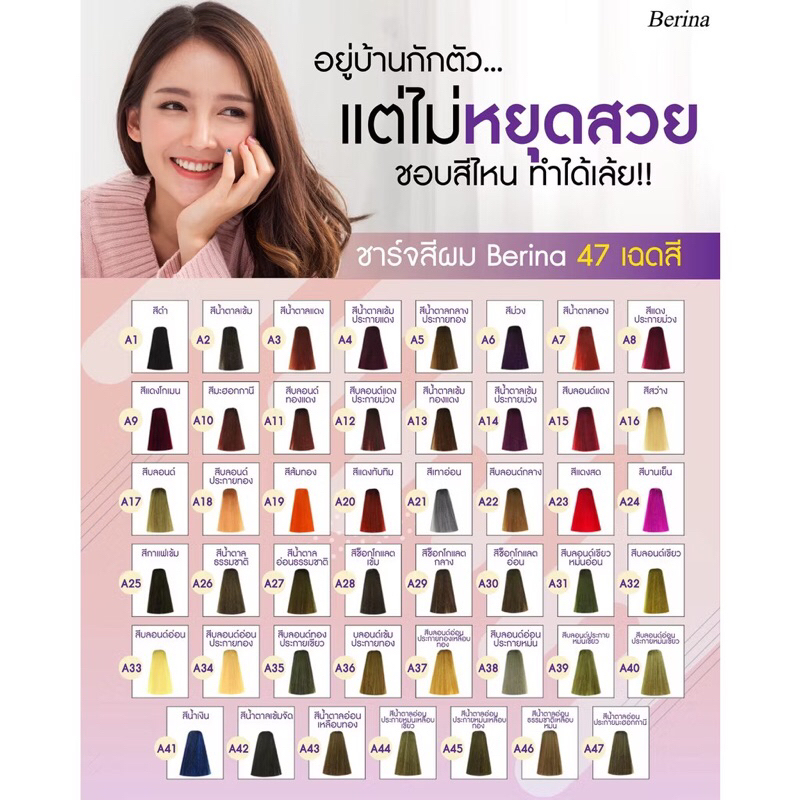 ส่งไว ครบทุกสี Berina A1-A47 เบอริน่า สีย้อมผม ยาย้อมผม ปิดผมหงอก ปิดผมขาว ครีมเปลี่ยนสีผม ราคาถูก