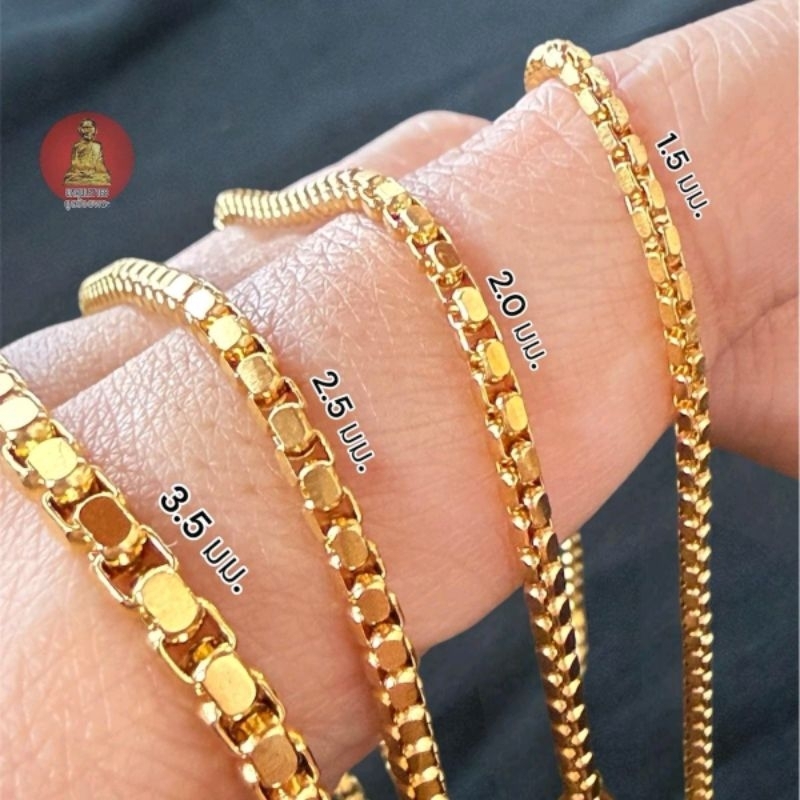 ยูสร้อยพระ สร้อยผ่าหวายตัดเหลี่ยมหัวจรวด 5 ขนาด สแตนเลสเลเซอร์ 22k ไม่ดำ ไม่เป็นสนิม