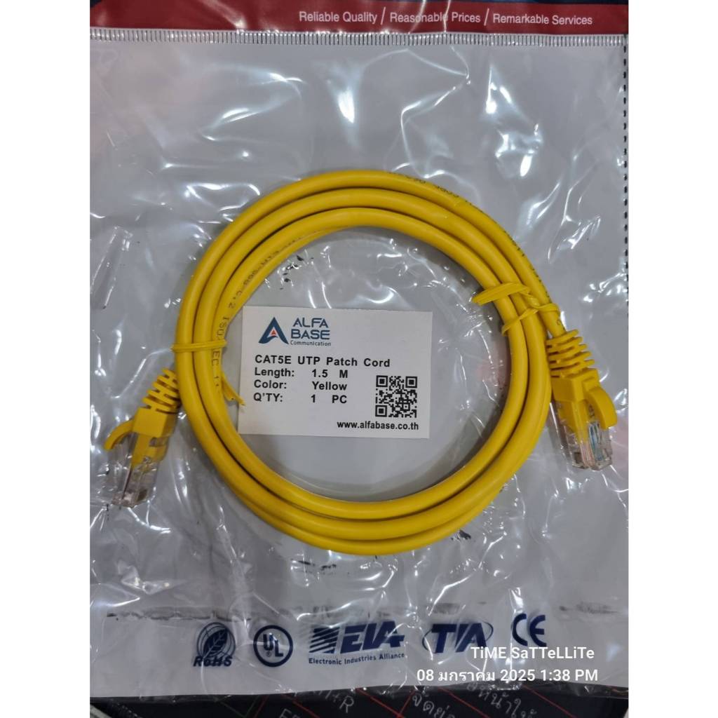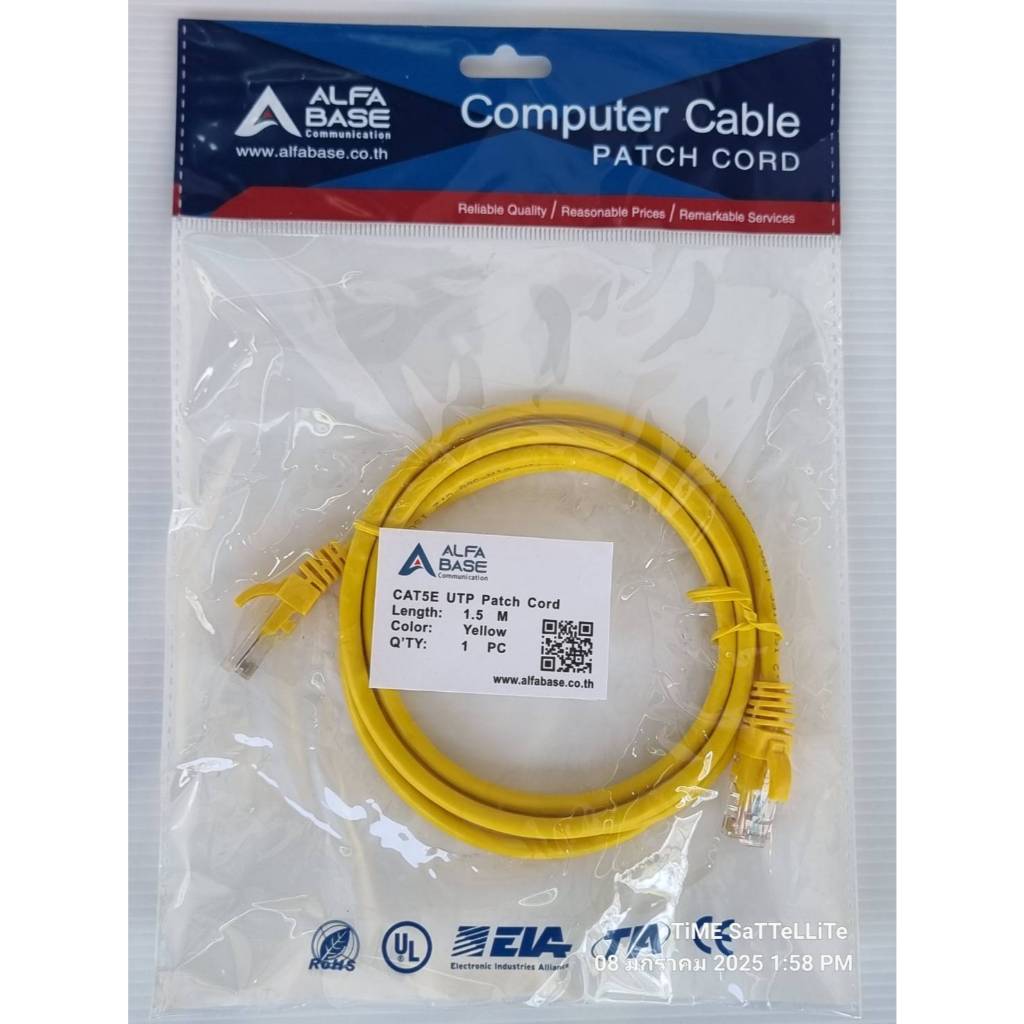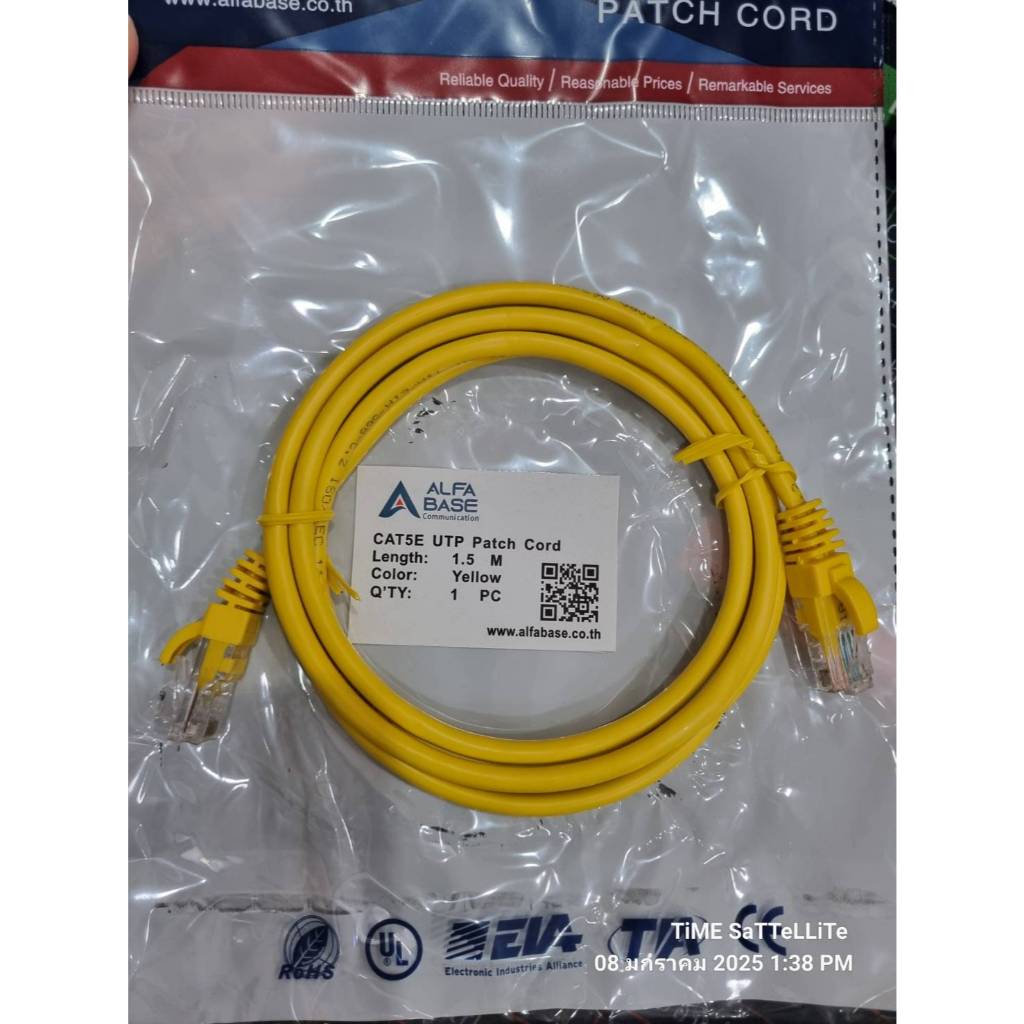 สายแลน Cat5e ยาว 1.5 เมตร สีเหลือง (CAT5E UTP Patch Cord)ห่อน้ำเงิน
