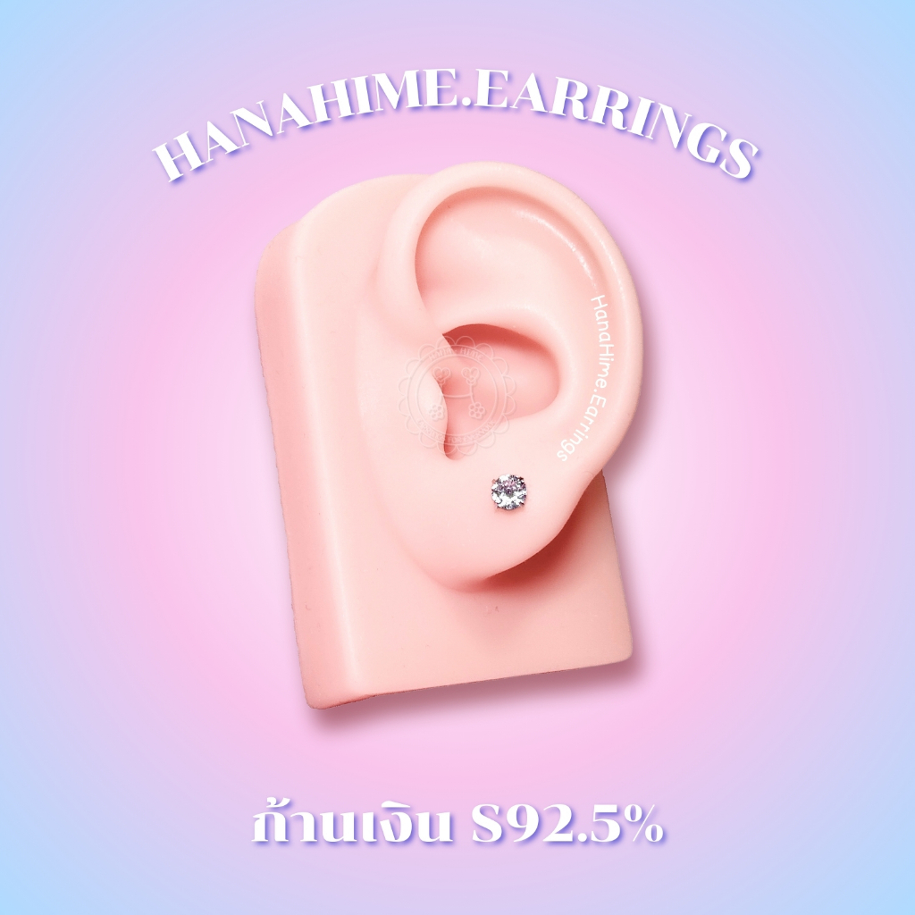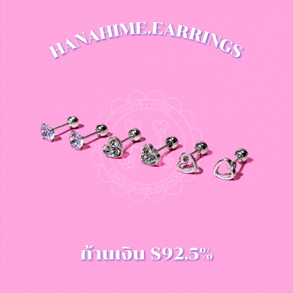 HanaHime.earrings - Silver Heart (1คู่) จิวหูเงินแท้ 92.5% จิวหู หมุดกลม จิวหูเพชรเทียม จิวหูหัวใจ