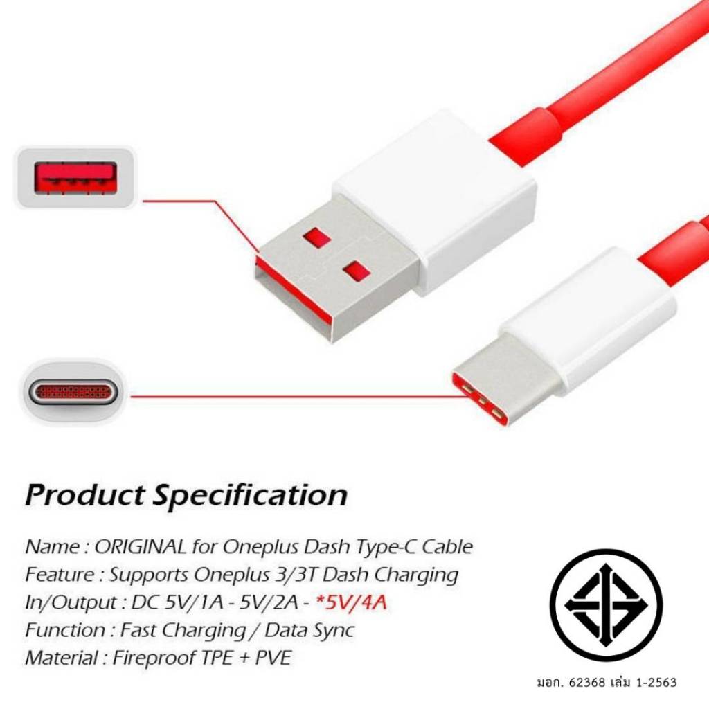 สายชาร์จ ONEPLUS DashCharge USB TYPE-C (1เมตร,2เมตร) รองรับชาร์จเร็ว ชาร์จด่วน ของแท้ สายสีแดง