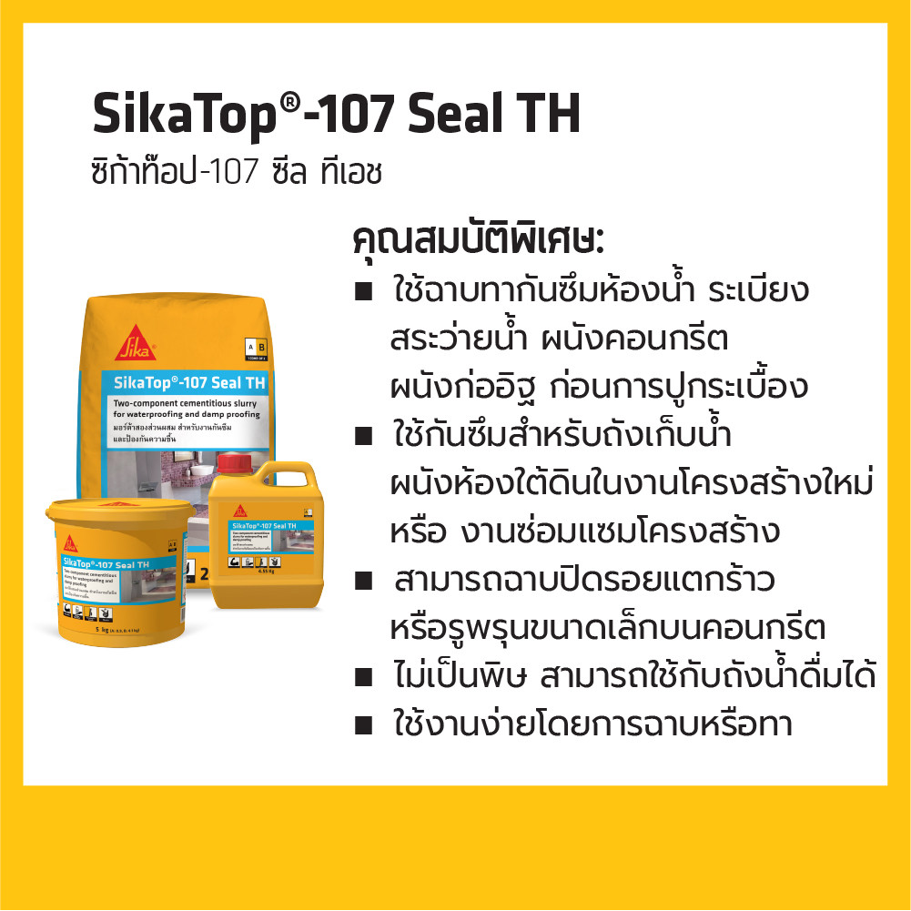 SIKATOP-107 SEAL TH ซีเมนต์สำหรับงานกันซึมและป้องกันความชื้น A+B 5KG / 25KG