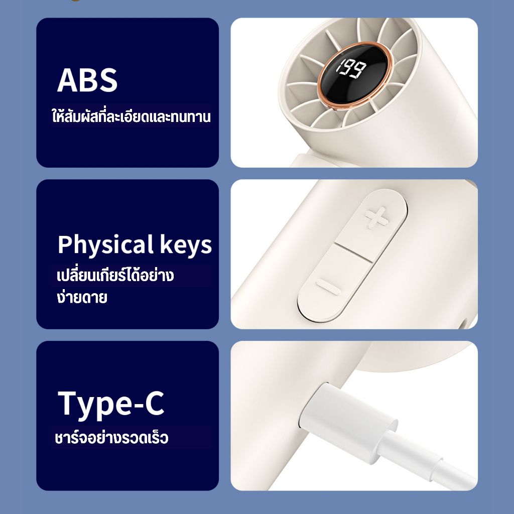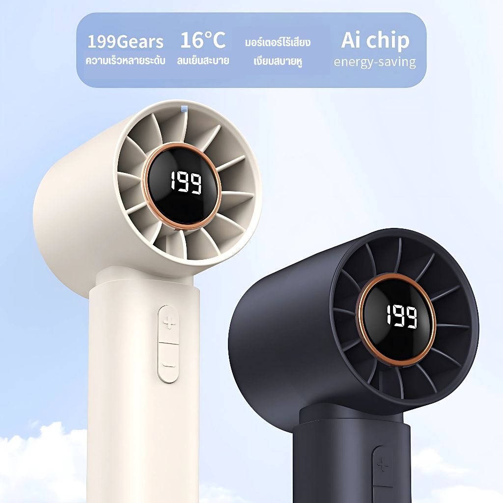 พัดลมพกพา พัดลมไอเย็นพกพา ขนาดเล็ก แบบพกพา ปรับระดับได้ 199 ระดับ 4500mAh พัดลมพกพา ไม่มีใบมีด ชาร์จใหม่ได้