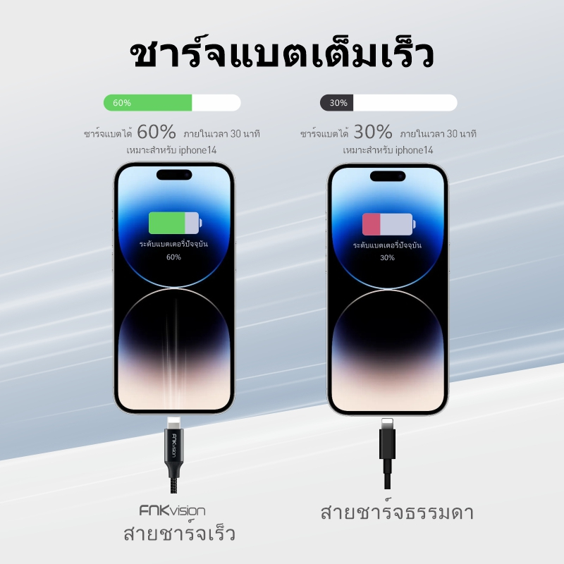 FNKvision สายชาร์จ ชาร์จเร็ว 2.4A ยาว 1 เมตร / 2 เมตร รองรับ IOS 14/13/12/11/10 สำหรับ ไอโฟน 6/6Plus/7/7Plus 13