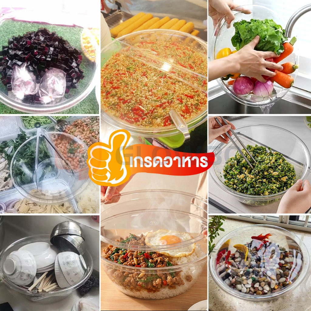 กะละมัง ใสกิ๊ก ใสเหมือนกระจก วัสดุหนาพิเศษ ชามผสมอาหาร ผัก ผลไม้ มีด้ามจับ มี แข็งแรง วัสดุ PET ทนทาน