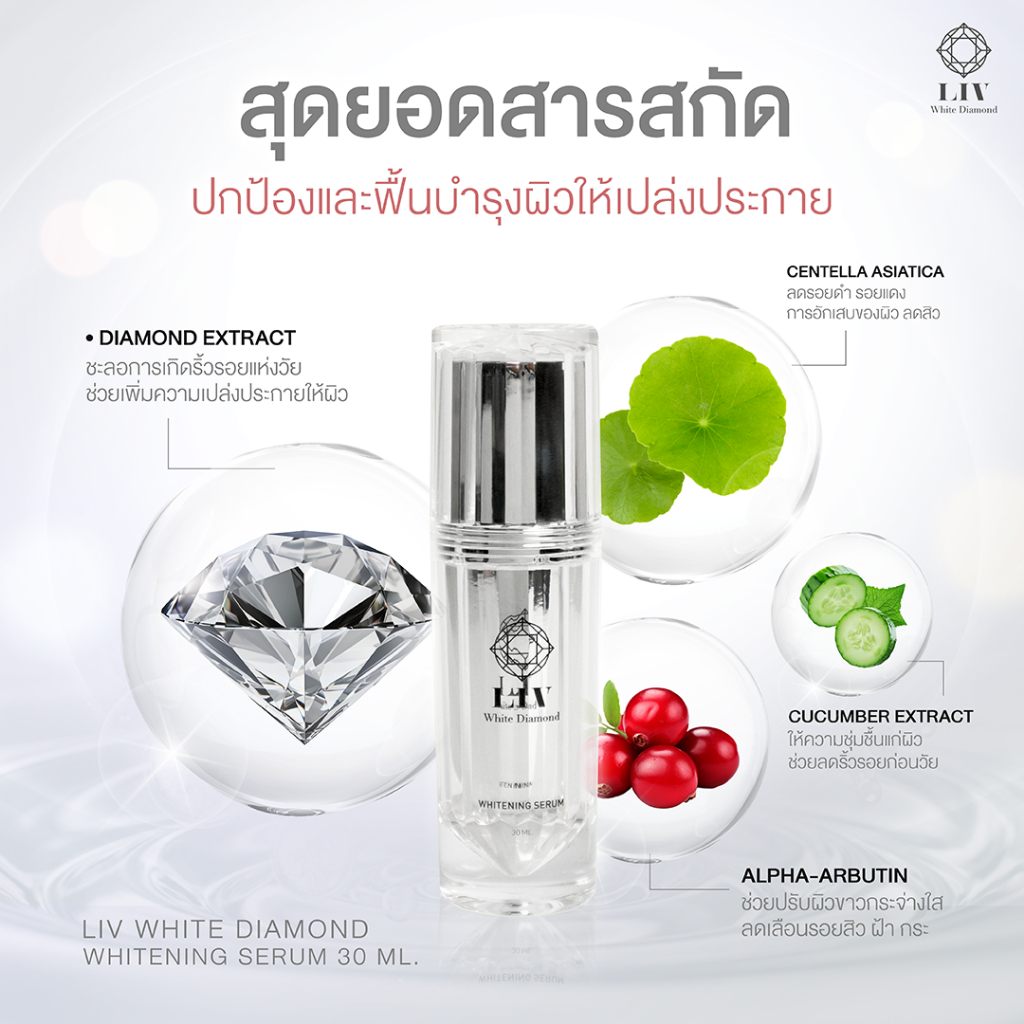 ลิฟท์ไวท์ ไดมอนด์ ไวเทนนิ่ง เซรั่มฟื้นฟูบำรุงผิวหน้า ลดฝ้า ช่วยบูสต์ผิวเนื้อเซรั่มบางเบา ซึมไวส่งฟรี