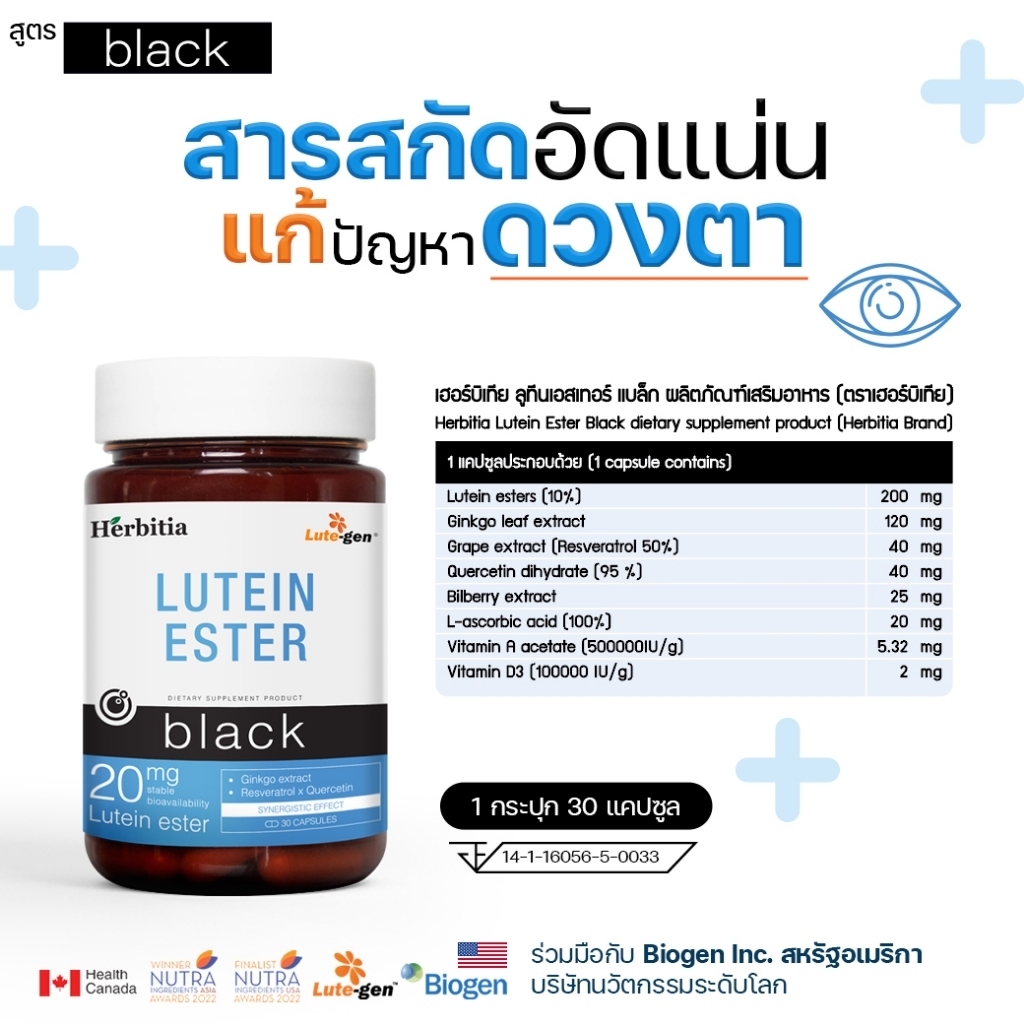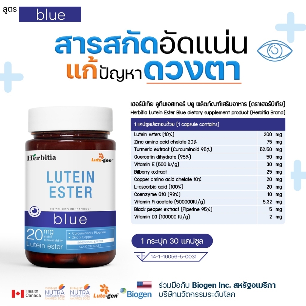 ส่งด่วน!! Herbitia Lutein Ester เฮอร์บิเทีย ลูทีน เอสเทอร์ 20 มก. Herbitia Blue 3 กระปุก กระปุกละ 30 แคปซูล