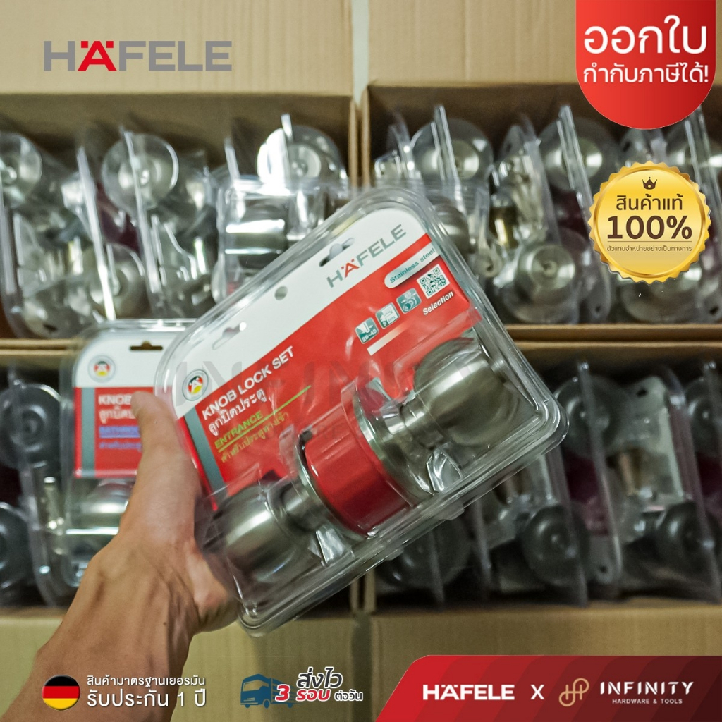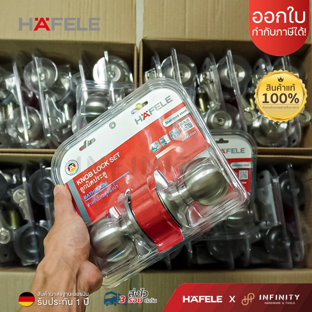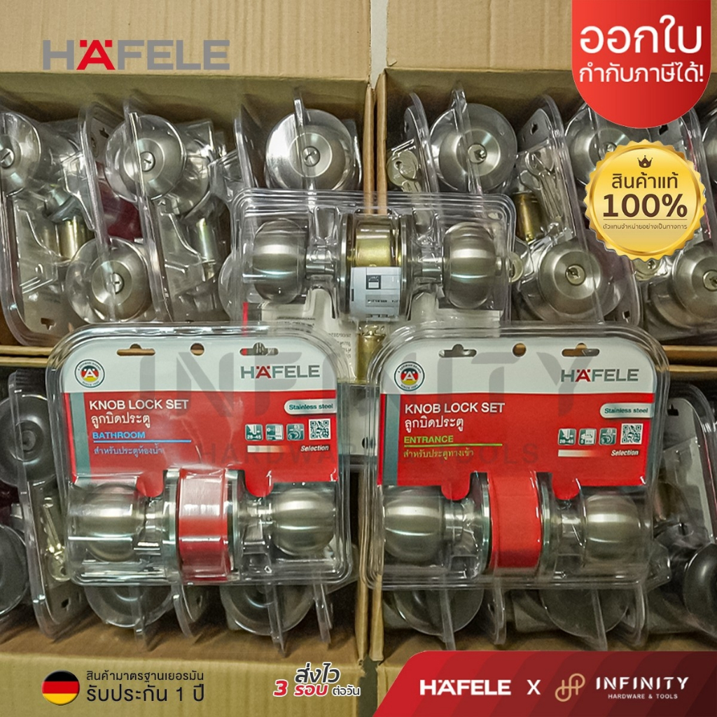 Hafele ลูกบิดประตู สแตนเลสสตีล สีสแตนเลส ห้องทั่วไปและห้องน้ำ รหัส 489.93.270, 489.93.271