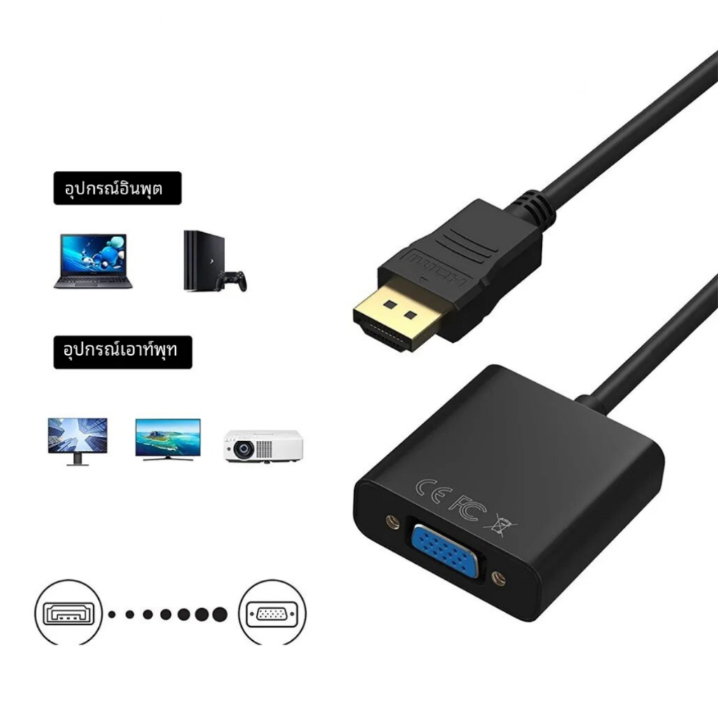 สายไฟแปลง DP HDMI to VGA สายแปลงหน้าจอคอมพิวเตอร์ HDTV Convert cable VGA to HDMI / Display Port