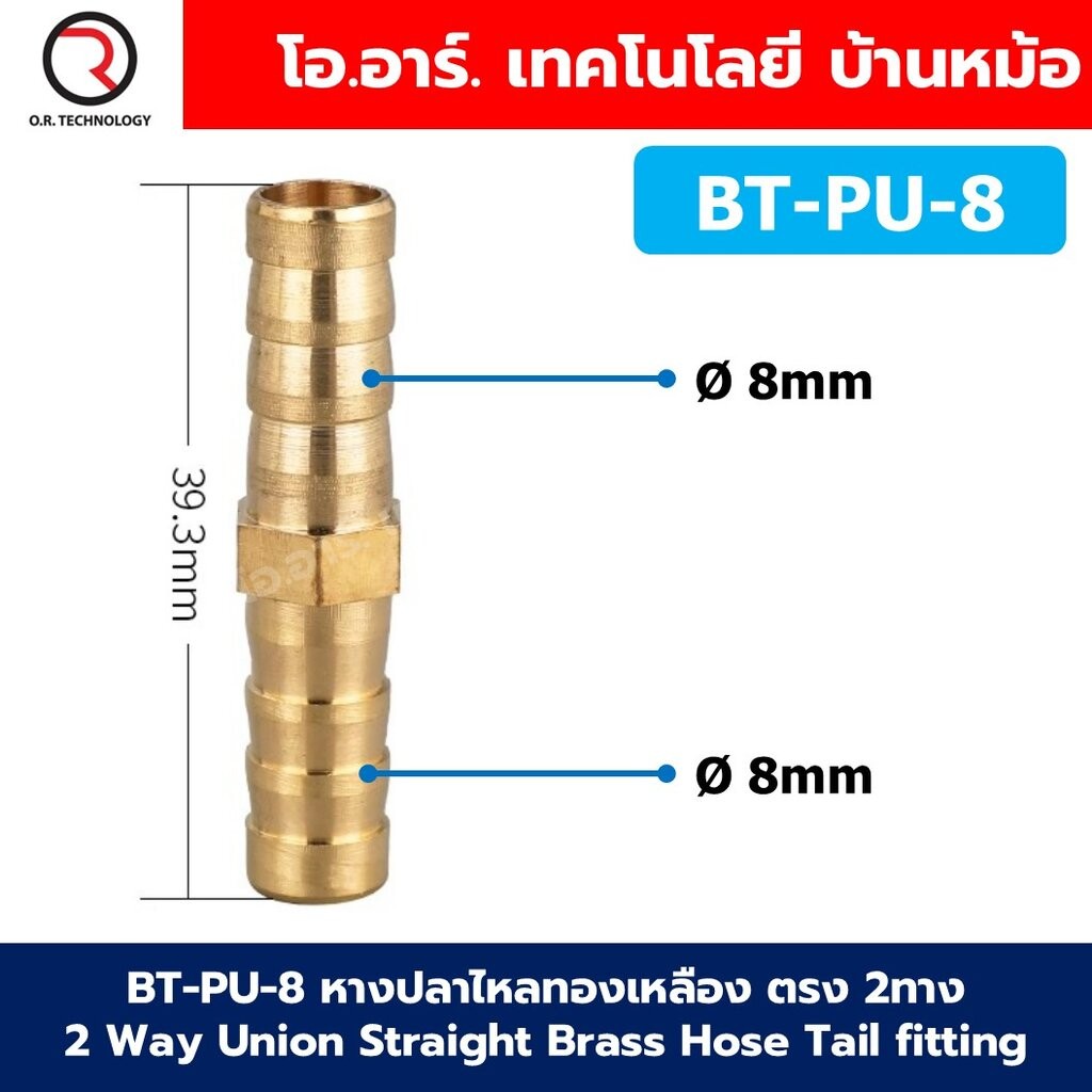 BT-PU หางปลาไหลทองเหลือง 2ทาง 2Way Union Brass Hose Tail Air fitting ข้อต่อลมทองเหลือง Barb tails Connector BT-PU-6-19