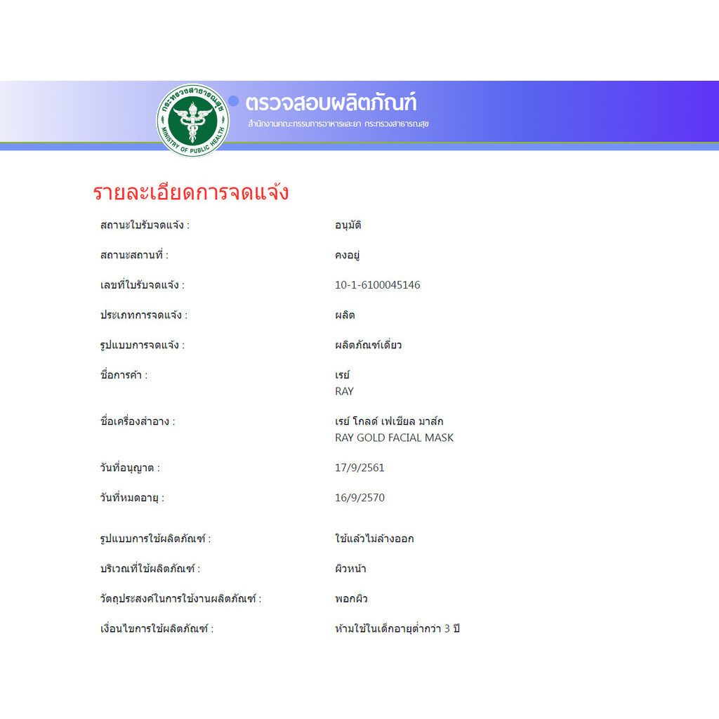 Ray Facial Mask 30g x 10 ซอง แผ่นมาสก์หน้า สูตร สีเงิน ทอง 💓