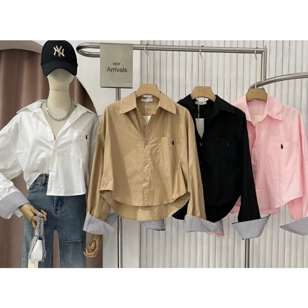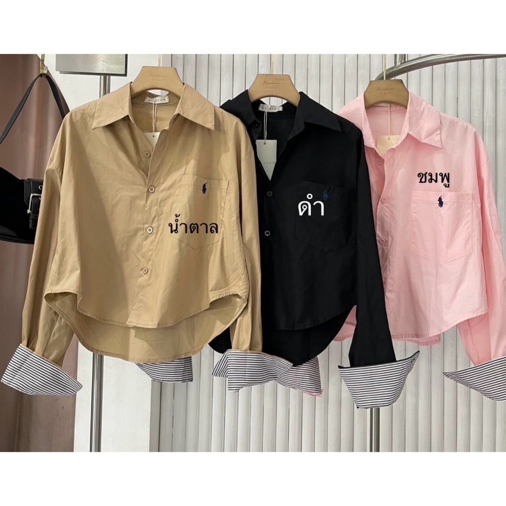ป้าย MAIKAEW เสื้อเชิ้ตแขนยาวผ้าคอตตอน 100% ปลายแขนแต่งริ้ว อก 42 นิ้ว ด้านหน้ายาว 20 นิ้ว