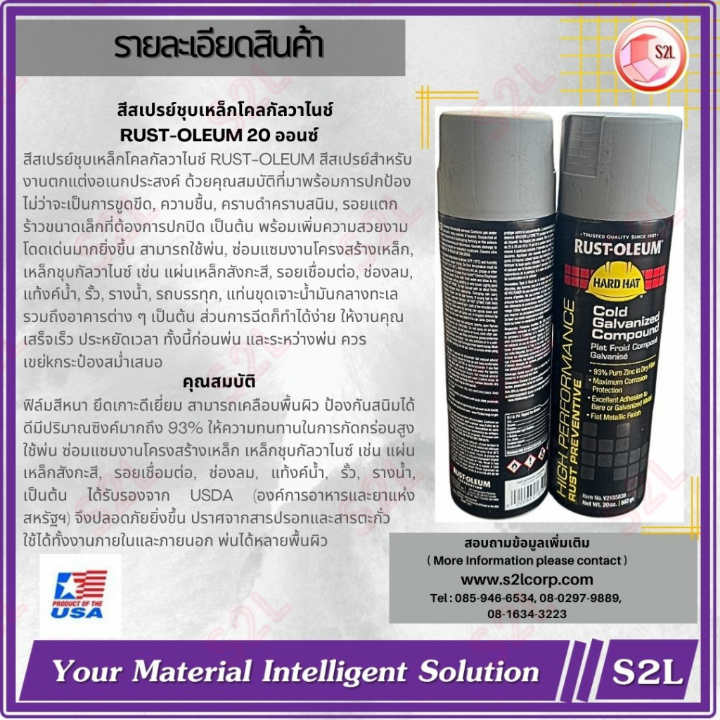 【Rust-Oleum】 สีสเปรย์โคลด์กัลวาไนซ์ (สเปรย์) ขนาดบรรจุ 20 Oz. Cold Galvanizing Compound Spray #V2185