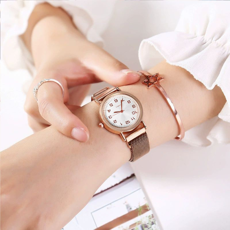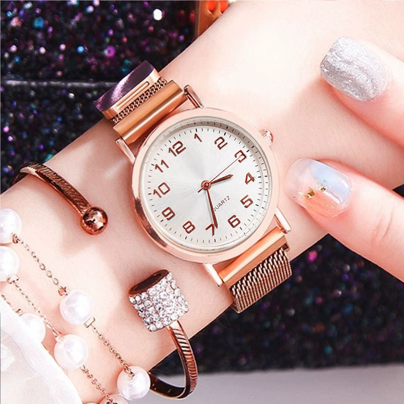 เคสโลหะผสมนาฬิกาควอตซ์อเนกประสงค์สําหรับผู้หญิงพร้อมสร้อยข้อมือสแตนเลสสําหรับสวมใส่ทุกวัน