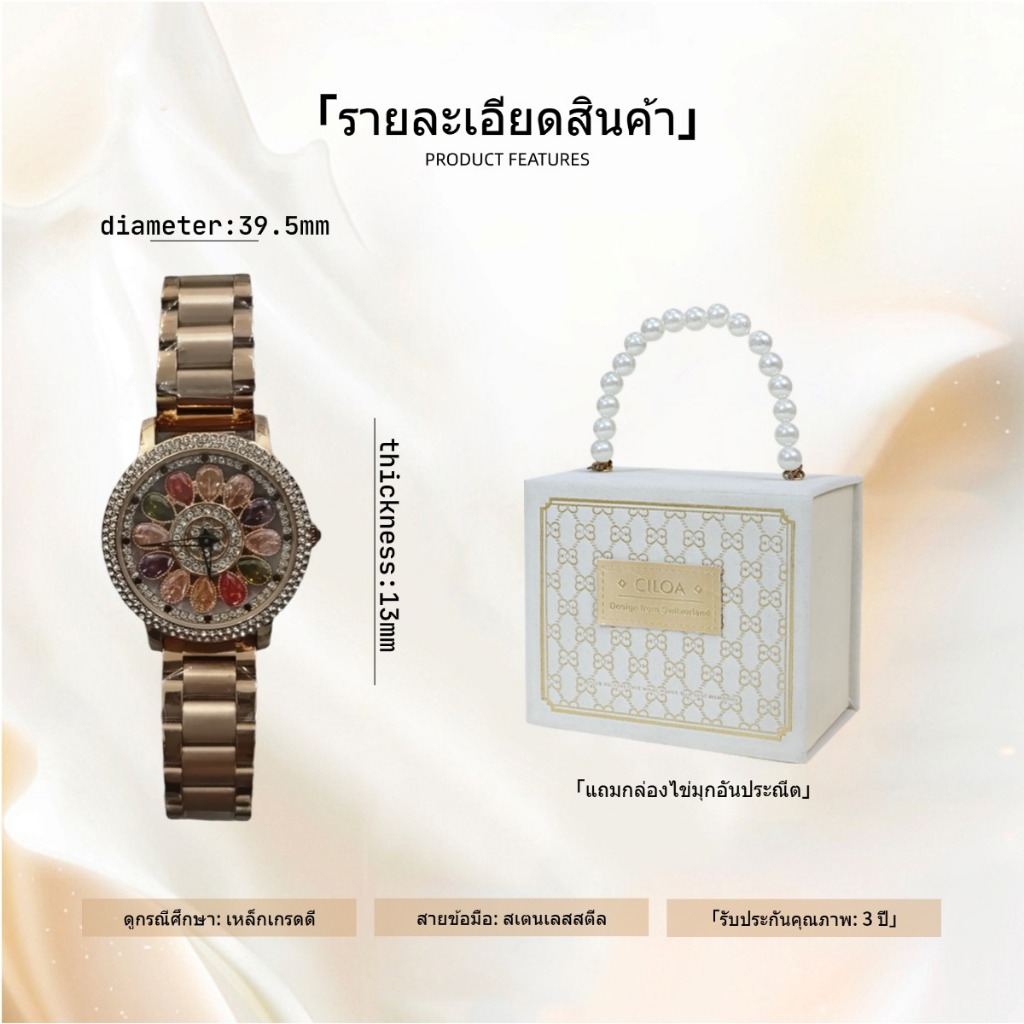 CILOA 1ชิ้นสุภาพสตรีแฟชั่นของผู้หญิงมูลค่าสูงหน้าปัดที่มีสีสันหมุนได้สแตนเลส/สายหนังวัวนาฬิกาควอทซ์กันน้ํา6999
