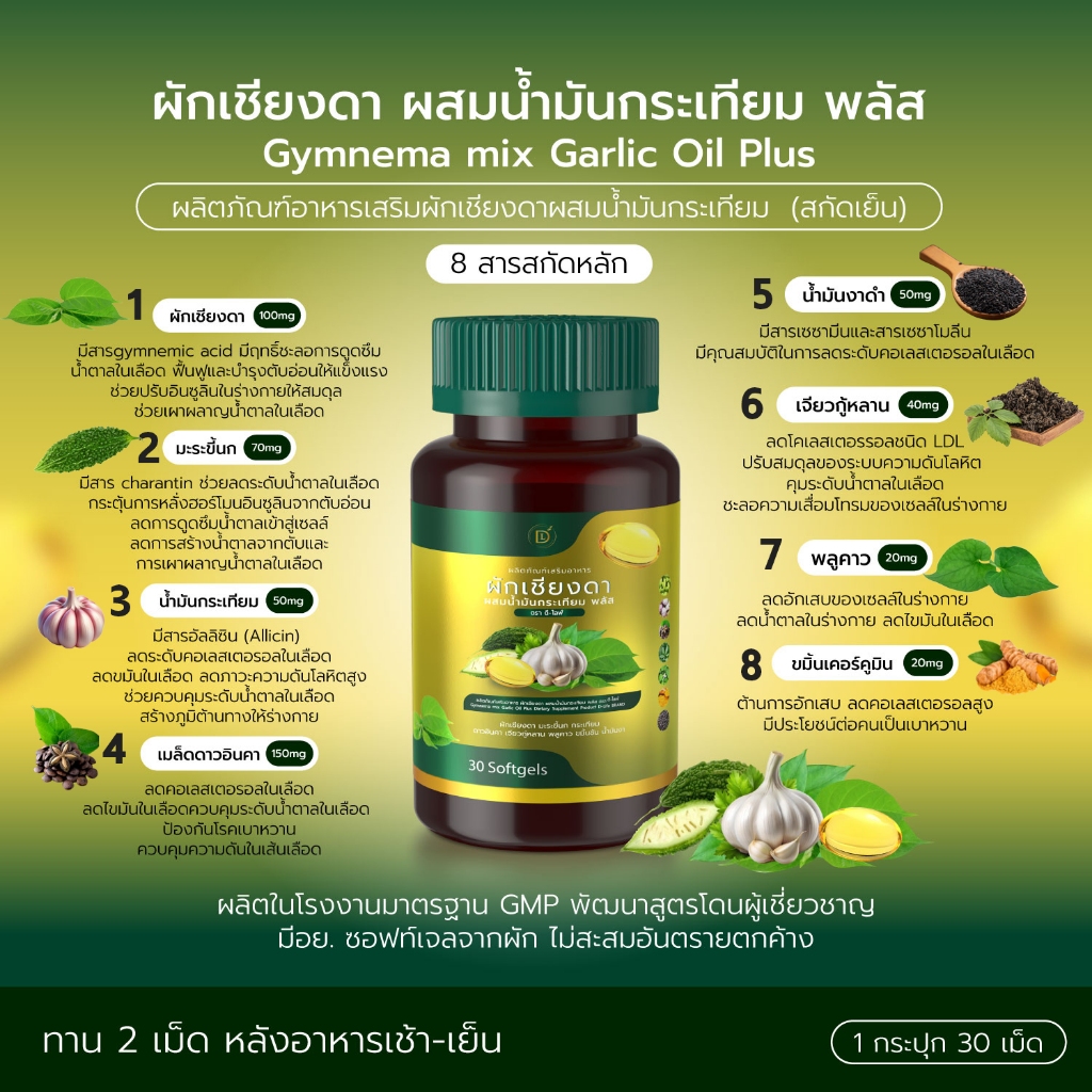 [ตะกล้าบริษัท] สกัดเย็นผักเชียงดา กระเทียม มะระขี้นก น้ำตาลสูง ดื้ออินซูลิน Gymnema mix Garlic Oil