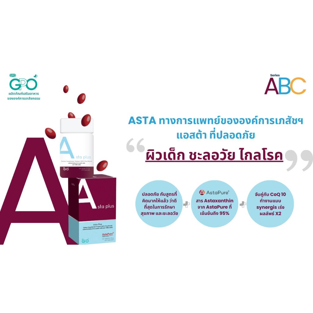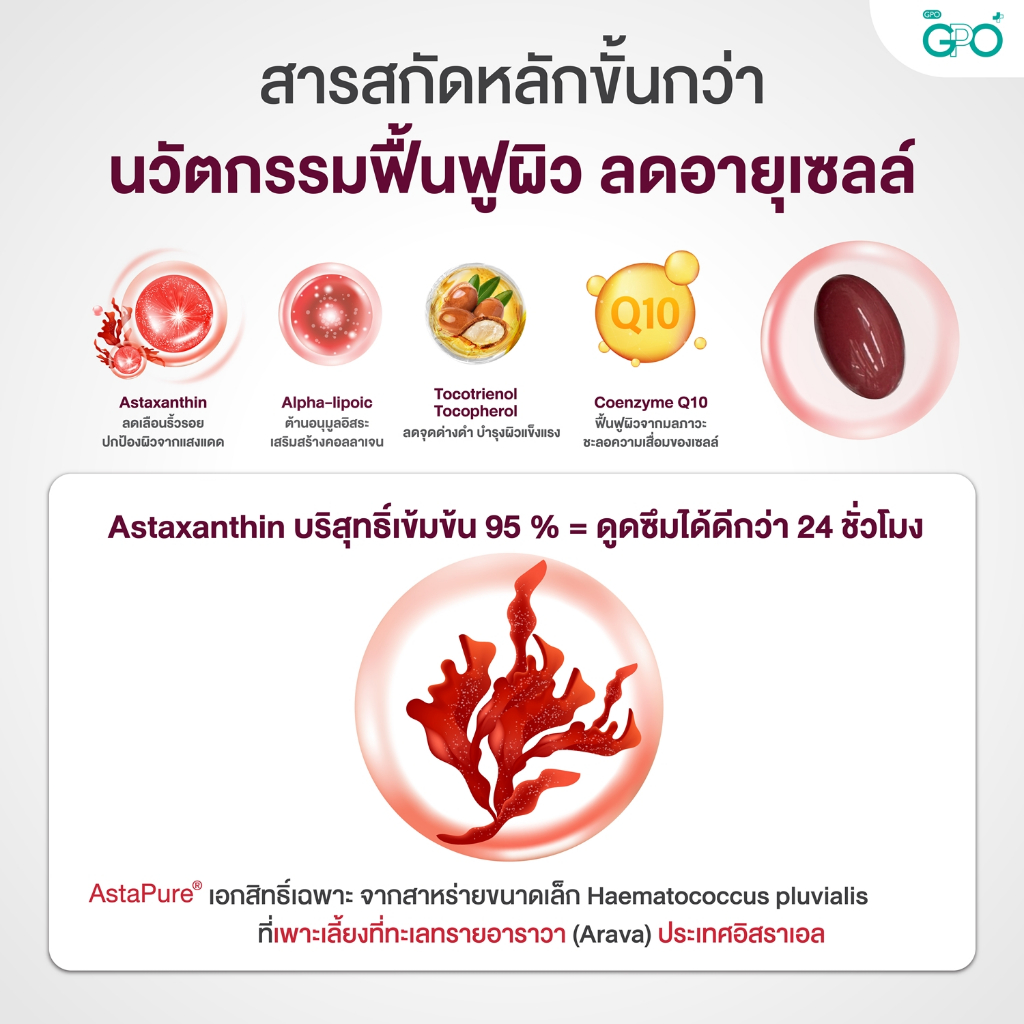 ✨GPO PLUS Asta Plus | Astaxanthin 95% บริสุทธิ์ ต้านอนุมูลอิสระช่วยฟื้นฟูผิวใส ชะลอวัย แอสต้า พลัส