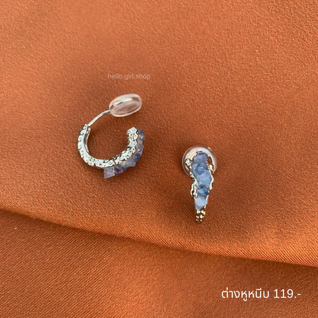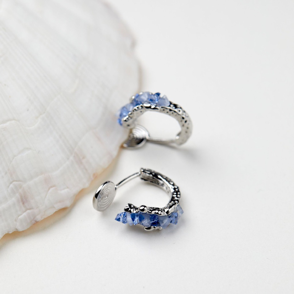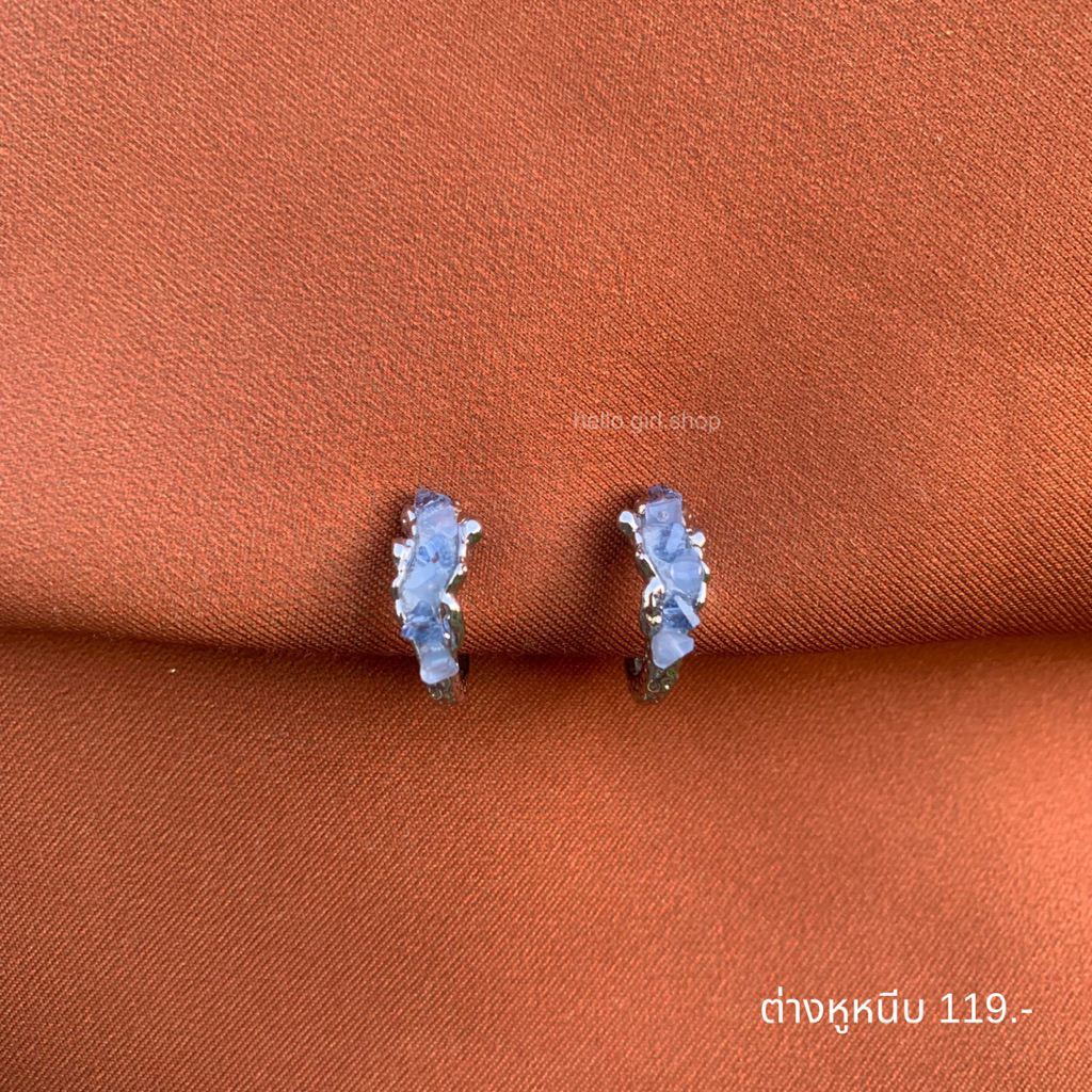 ( ต่างหูหนีบ ขดลวด ) ต่างหูห่วงสีฟ้า
