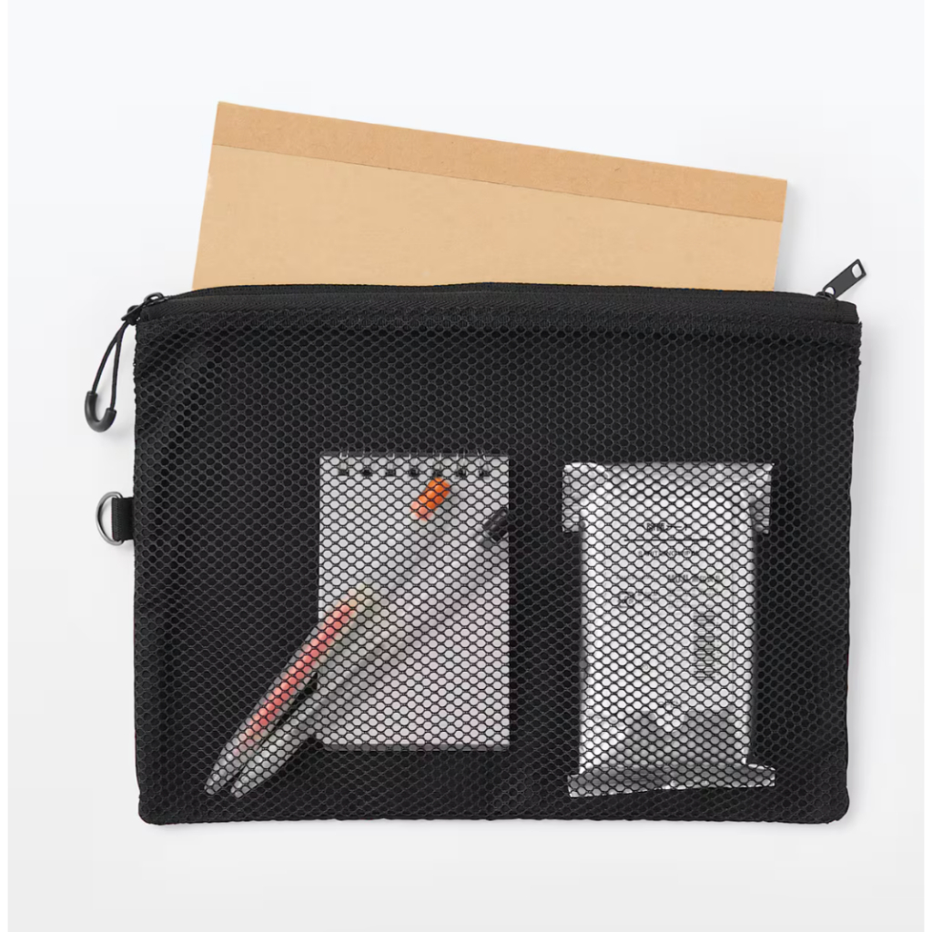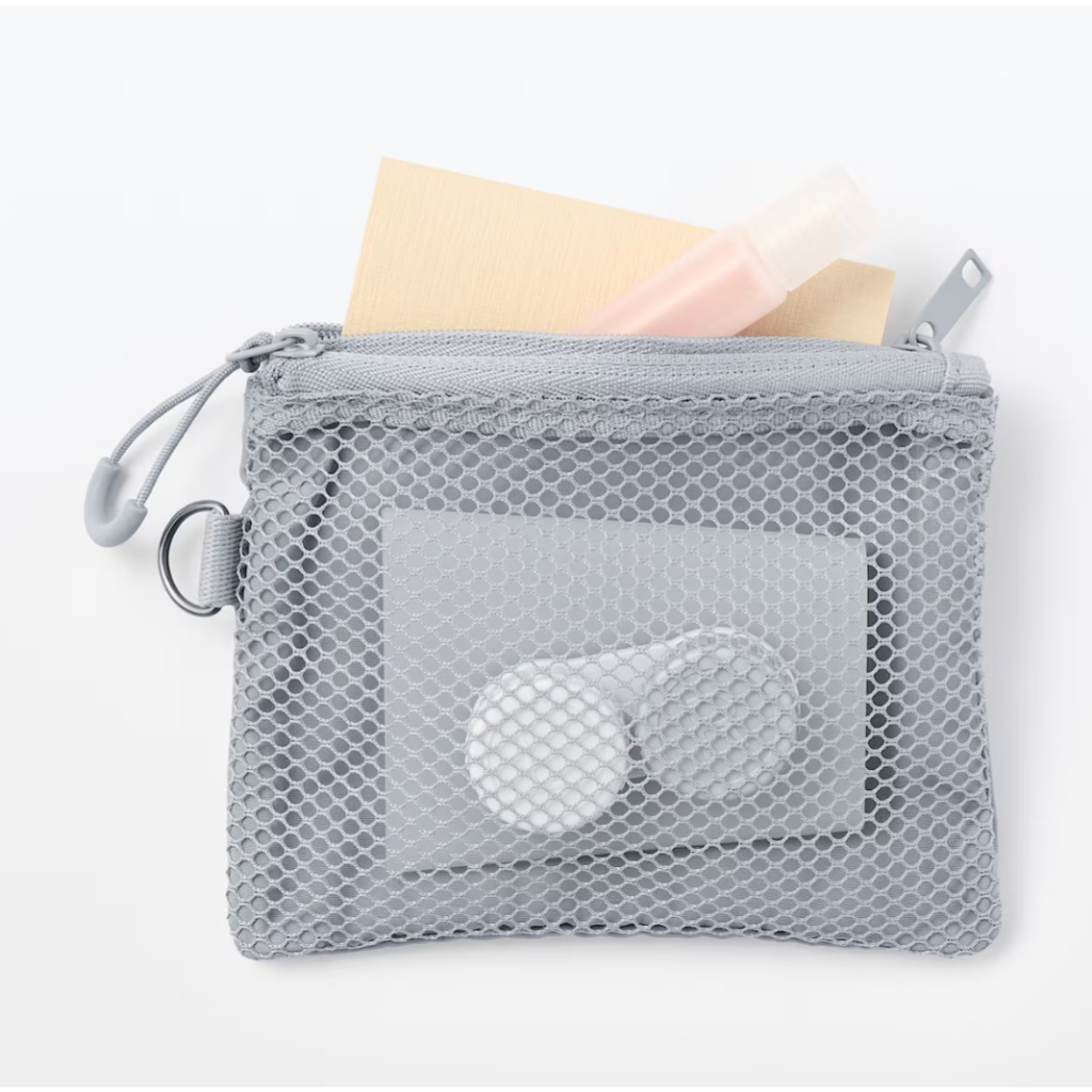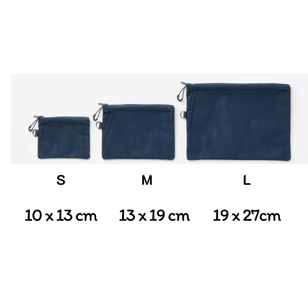 MUJI มูจิ กระเป๋า ตาข่าย จัดเก็บของเนื้อโพลีเอสเตอร์ มีช่องใส่ของเยอะ ซิปปิด ใช้งานสะดวก