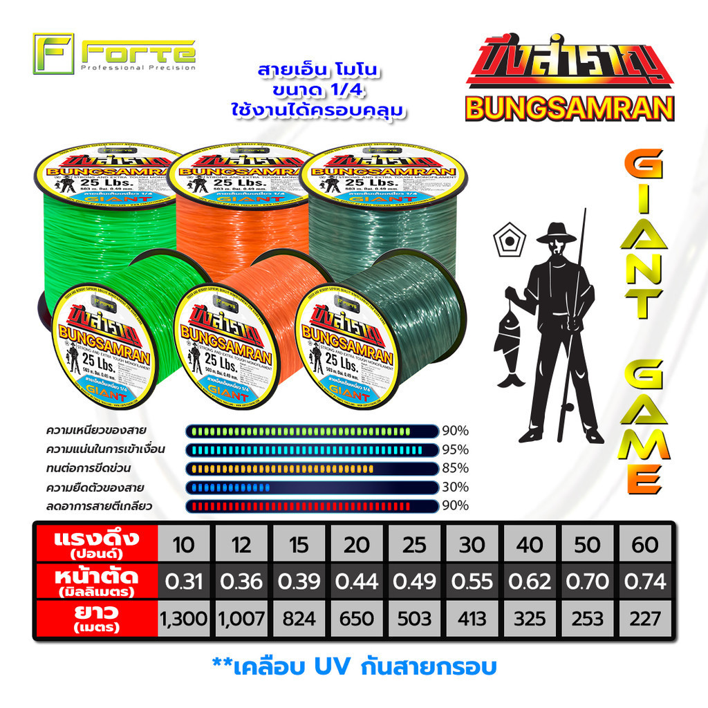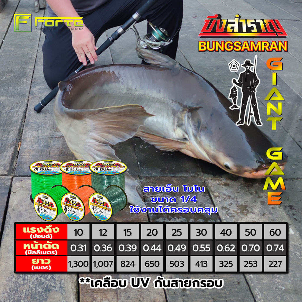 สายเอ็นเต็ม 1/4 Forte x บึงสำราญ เหนียวจัด ชัดจริง แรงดึงสูง สายเคลือบUV เอ็นเหนียวนุ่ม ไม่ตีเกลียว
