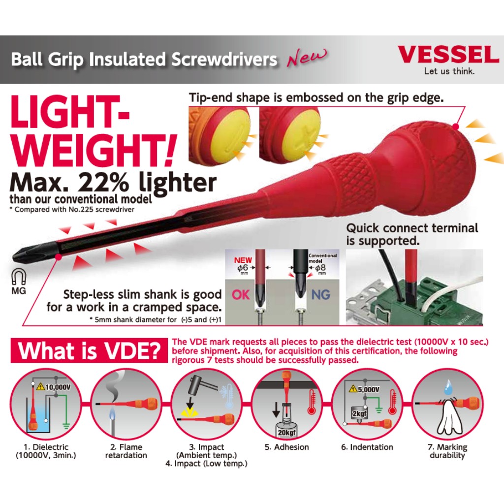 VESSEL ไขควงบอลกันไฟ ไขควงกันไฟ 1000V รุ่น No.200