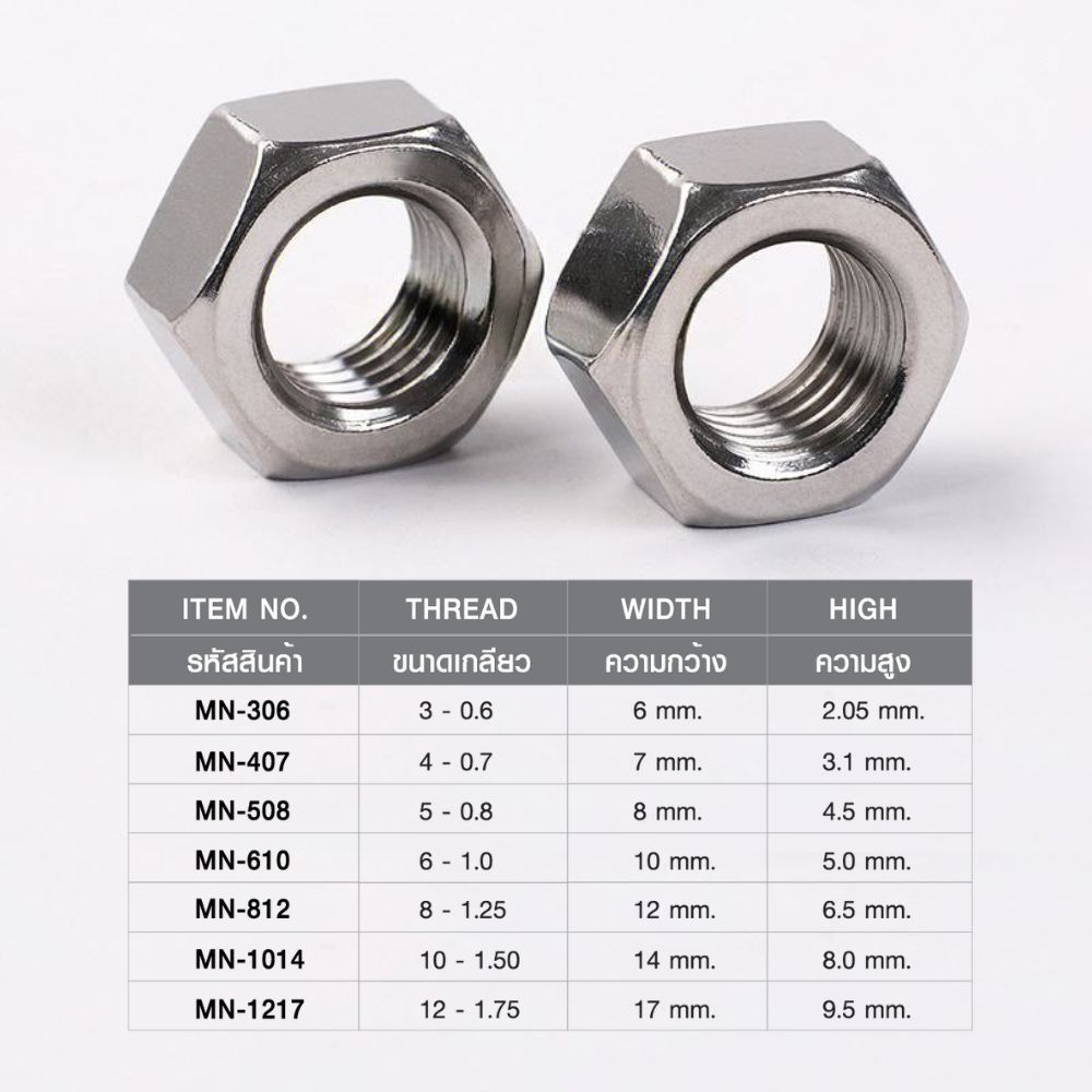 น็อตตัวเมีย น็อตเกลียวมิล น็อตหกเหลี่ยม M3-M12 ยกกล่อง