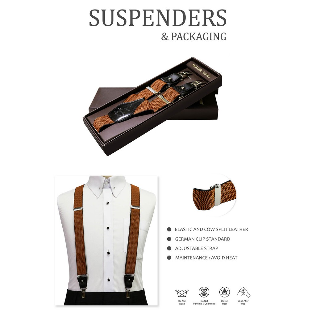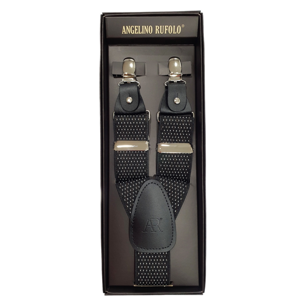 ANGELINO RUFOLO Suspenders(สายเอี๊ยม) 3.5CM. รูปทรงYแบบปรับความยาวได้ คุณภาพเยี่ยม ดีไซน์ Felix สีดำ