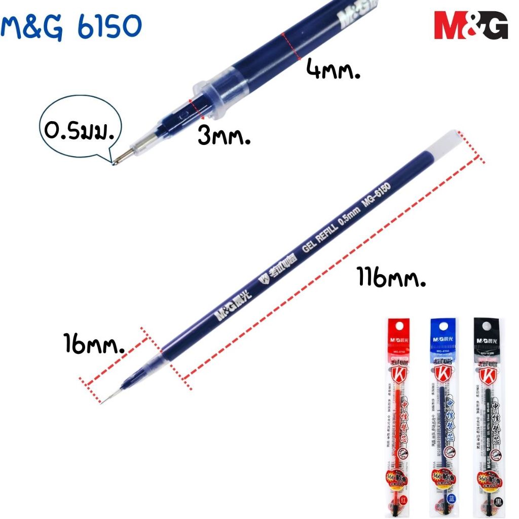 P302 ไส้ปากกา M&G 0.5/0.38มม. หัวBullet น้ำเงิน,แดง,ดำ แห้งเร็ว ไส้หมึกเจล ไส้ปากกาเจล ปากกา GEL SP