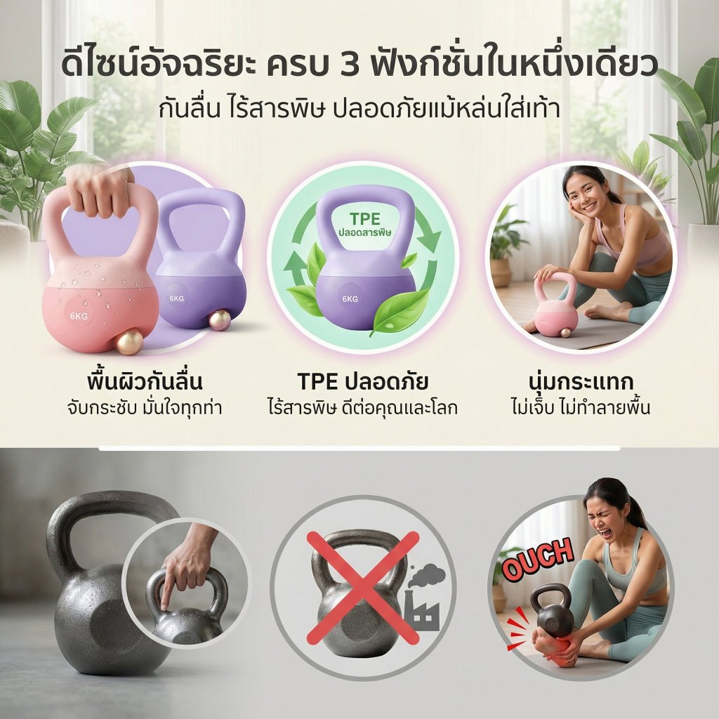 FleXi แคทเทิลเบล ผู้หญิง ดัมเบล Kettlebell 2kg/4kg/6kg/8kg/10kg ผู้หญิง เครื่องออกกำลังกาย