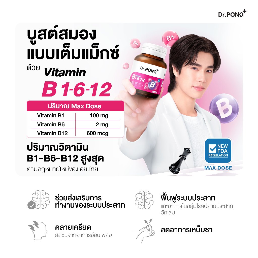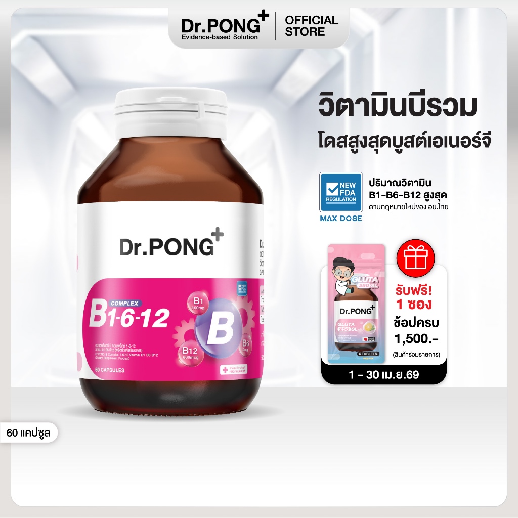Dr.PONG B Complex 1-6-12 Vitamin B1 B6 B12 วิตามินบีรวม บำรุงระบบประสาทและสมอง ช่วยคลายเครียด