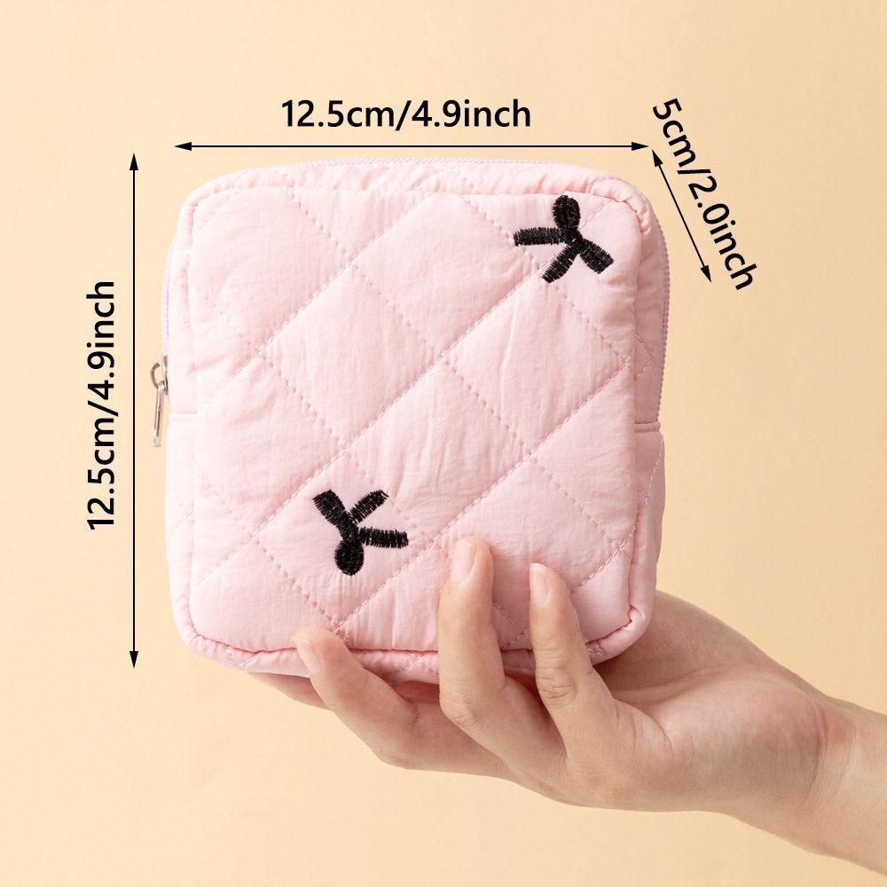 Uumir กระเป๋าจัดระเบียบผ้าอนามัย, Quilted Coquette กระเป๋าแต่งหน้าขนาดเล็ก, พวงกุญแจผ้าฝ้ายโบว์น่ารักหูฟังกระเป๋าใส่เหรียญ