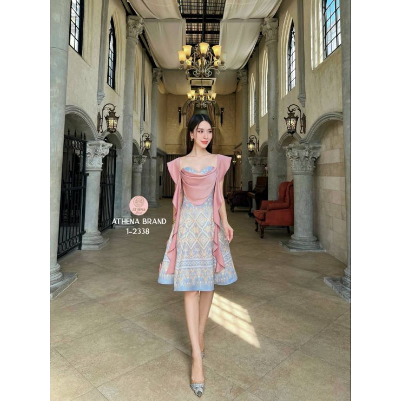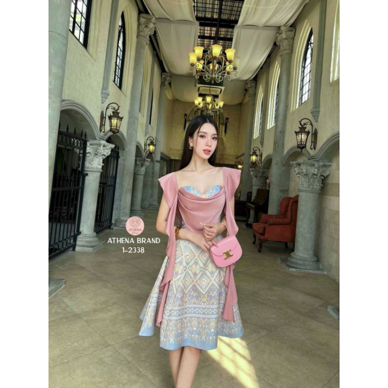Athena Mini Dress พิมพ์ลายทรงเจ้าหญิงดีไซน์ตัดต่อผ้าแต่งระบาย