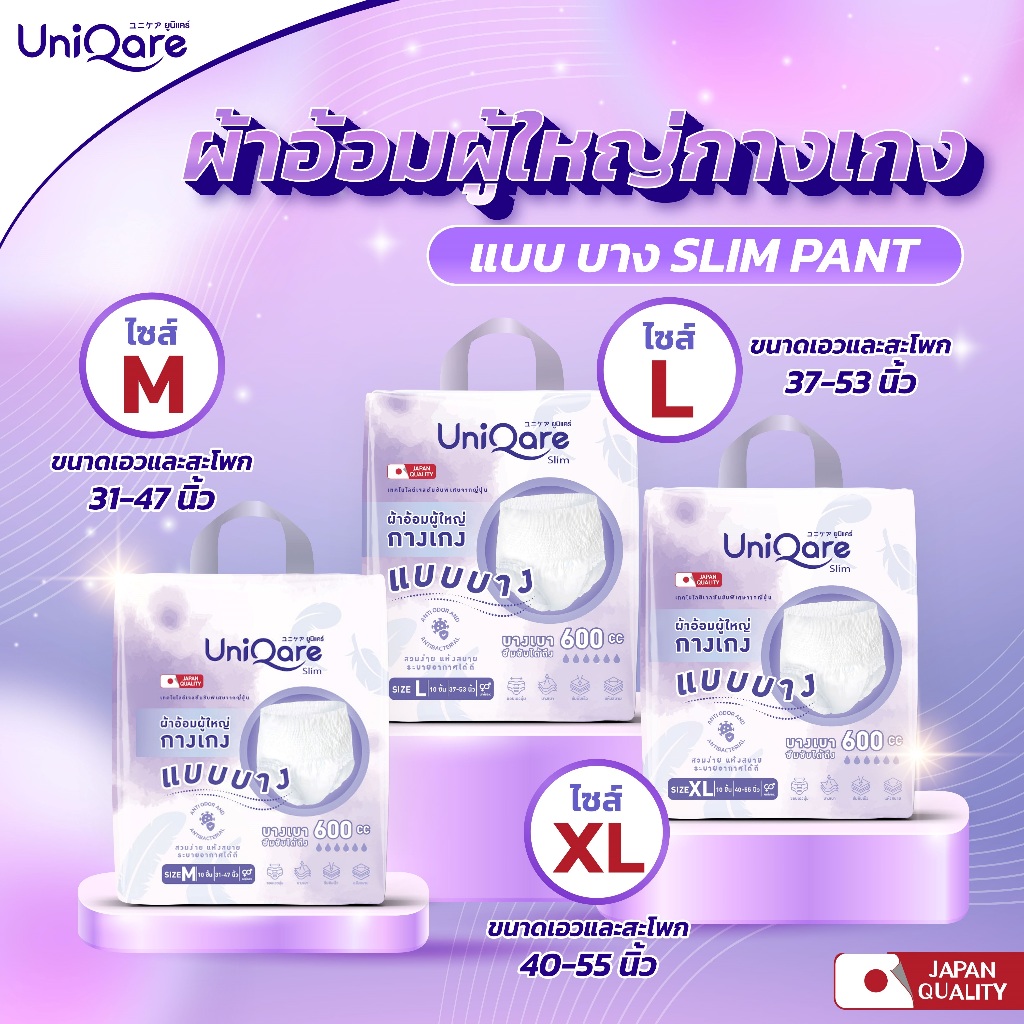 (แบบบาง) UniQare Slim Pant ผ้าอ้อมผู้ใหญ่แบบกางเกง ชนิดบาง 10ชิ้นต่อ 1 แพค บางเบา ใส่ง่าย นุ่มสบาย ซึมซับมากถึง 600 ซีซี