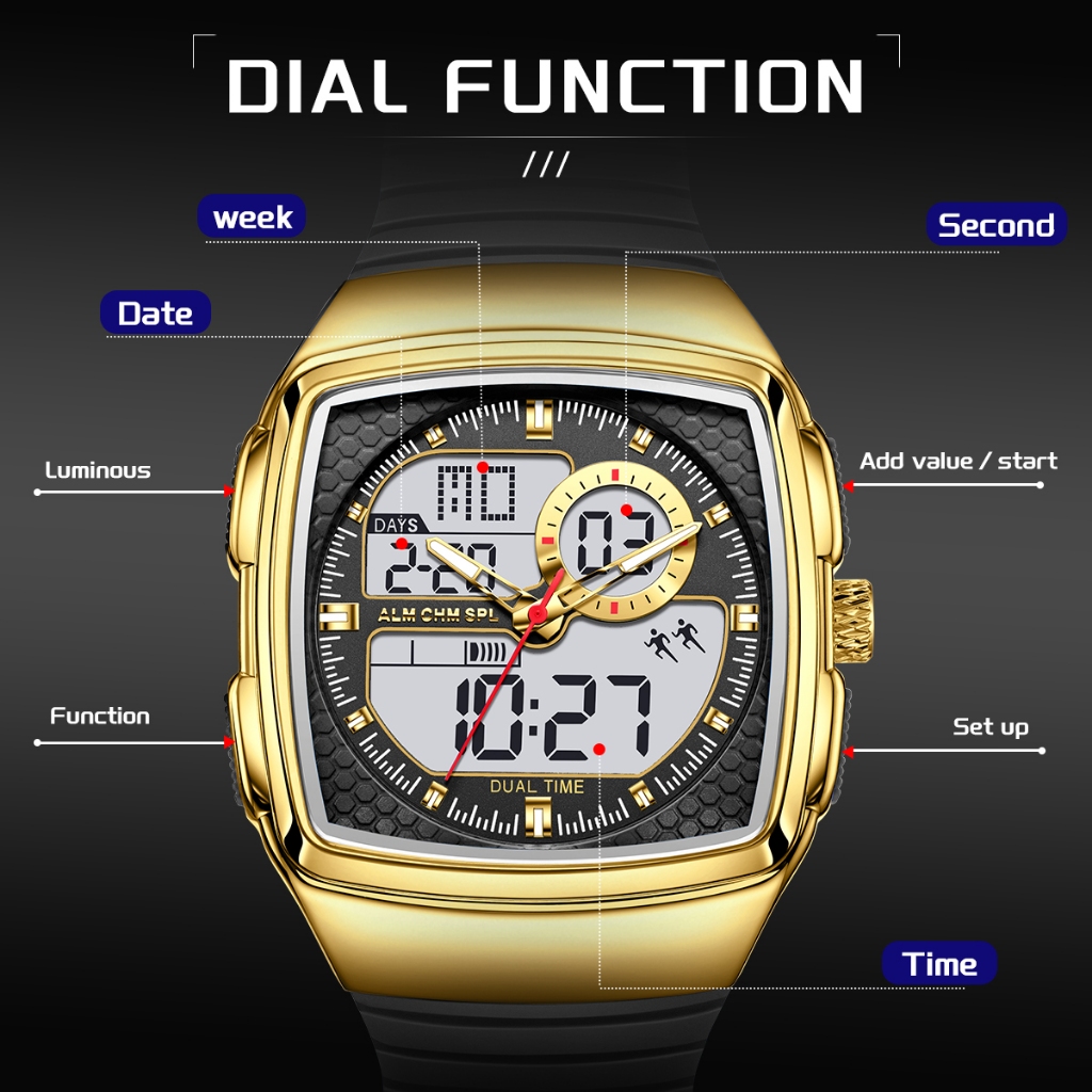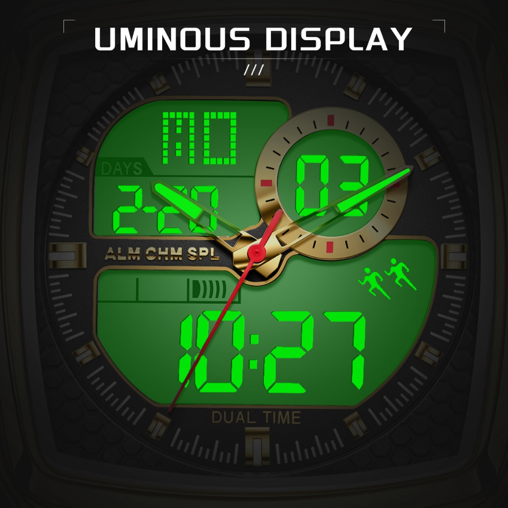 LIGE นาฬิกาเดิมผู้ชายกีฬานาฬิกาข้อมือดิจิตอลกันน้ําเรืองแสงวันที่สัปดาห์นาฬิกา