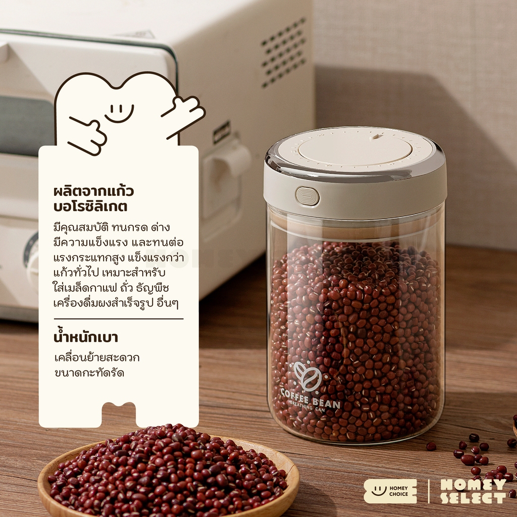 HomeyChoice โหลแก้วสุญญากาศ แก้วบอโรซิลิเกต เก็บกลิ่นและกันความชื้น ฝาปิดสนิทมีซีลยางซิลิโคน