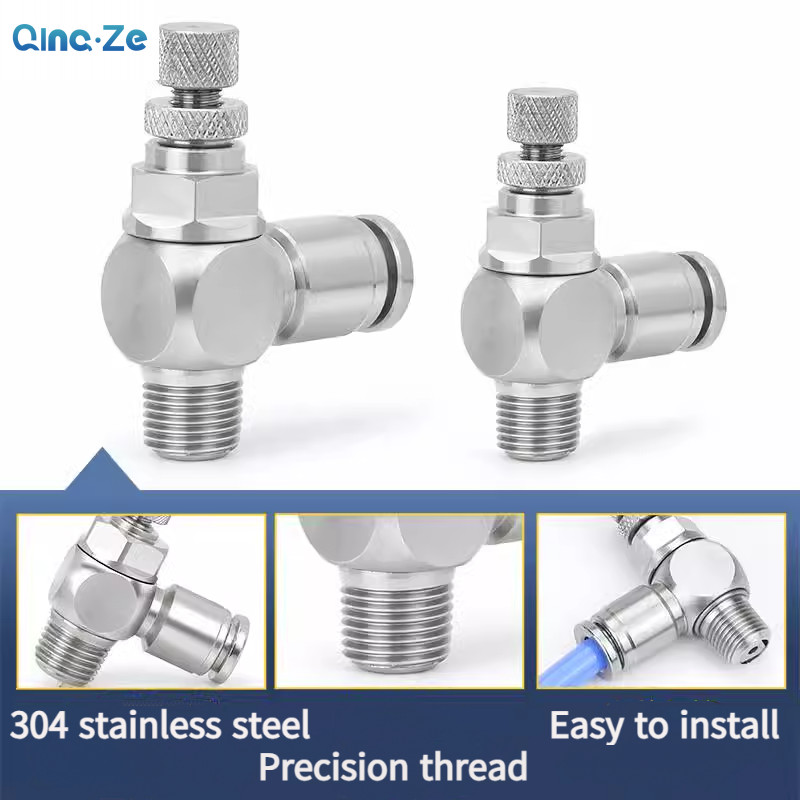 304ข้อต่อสแตนเลส วาล์วควบคุมความเร็วท่ออากาศนิวเมติก สล8-02 วาล์วปีกผีเสื้อกระบอก