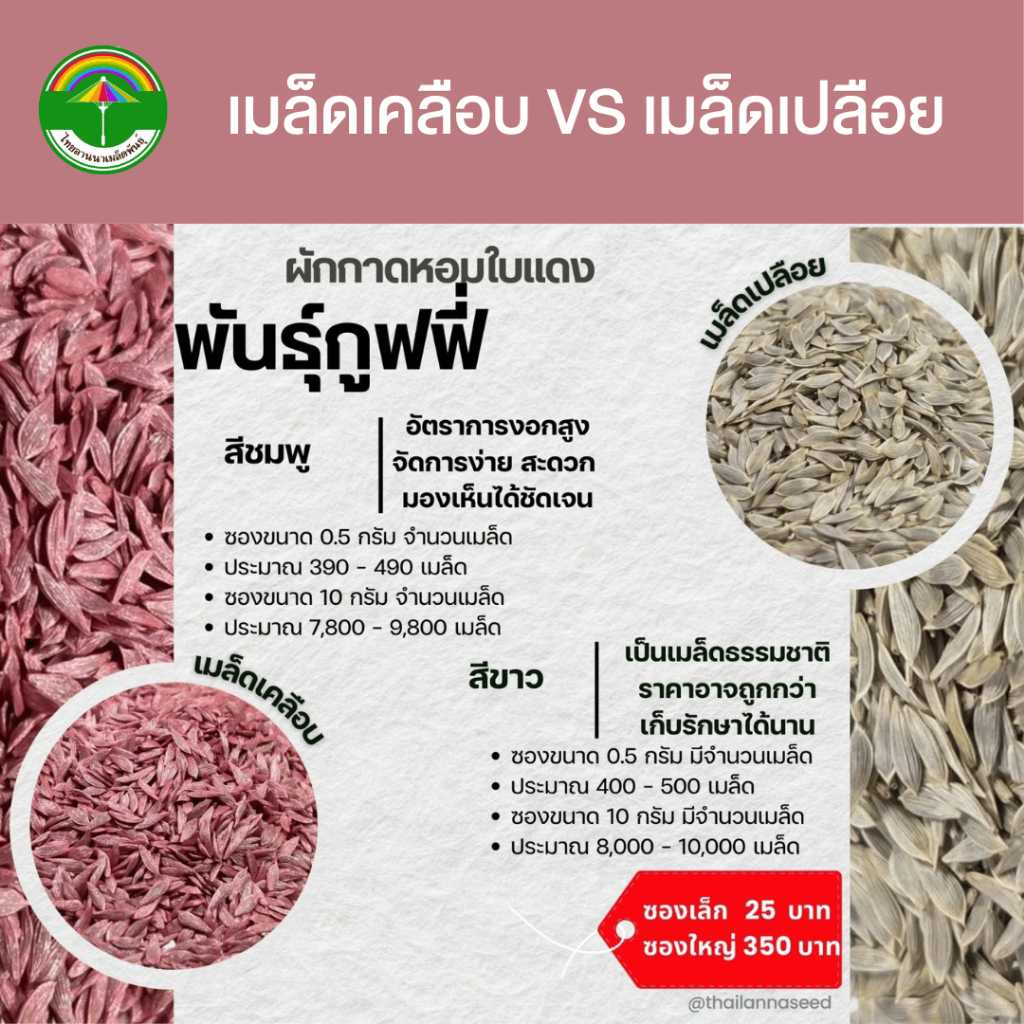 เมล็ดพันธุ์ผักสลัด ผักกาดหอมใบแดง พันธุ์กูฟฟี่ ( ขนาด 0.5 กรัม ) ( เมล็ดเคลือบ ) รหัสสินค้า SSC 1032